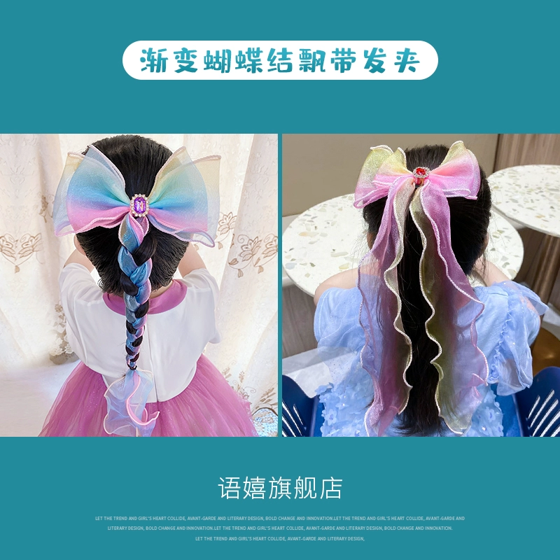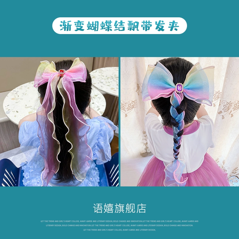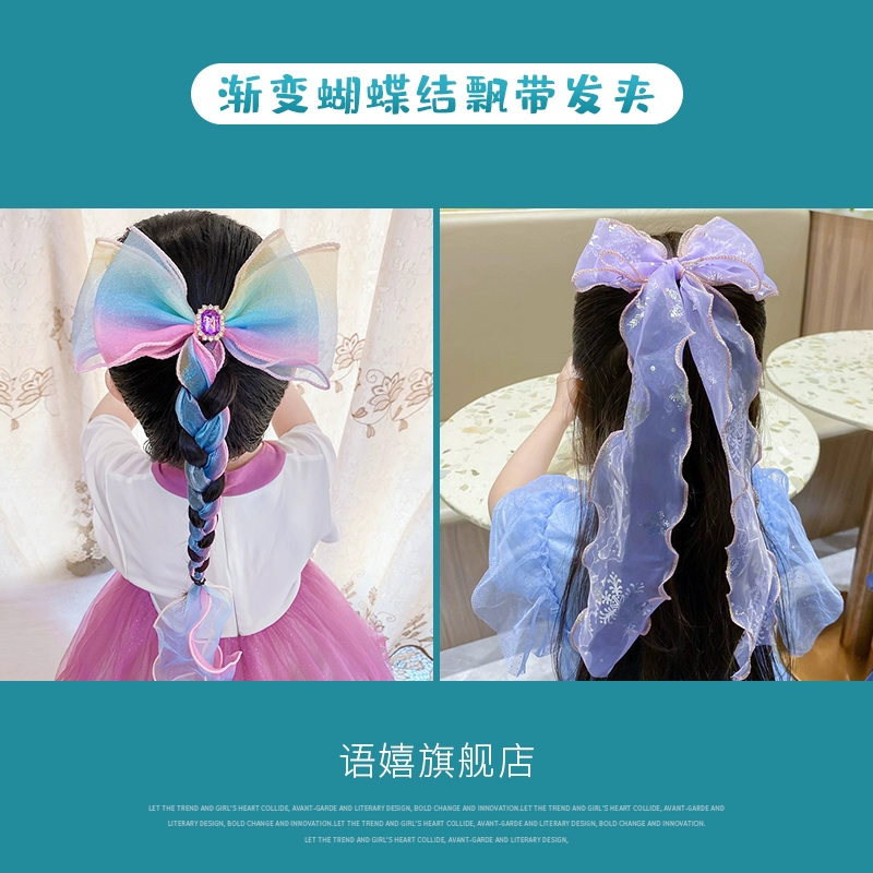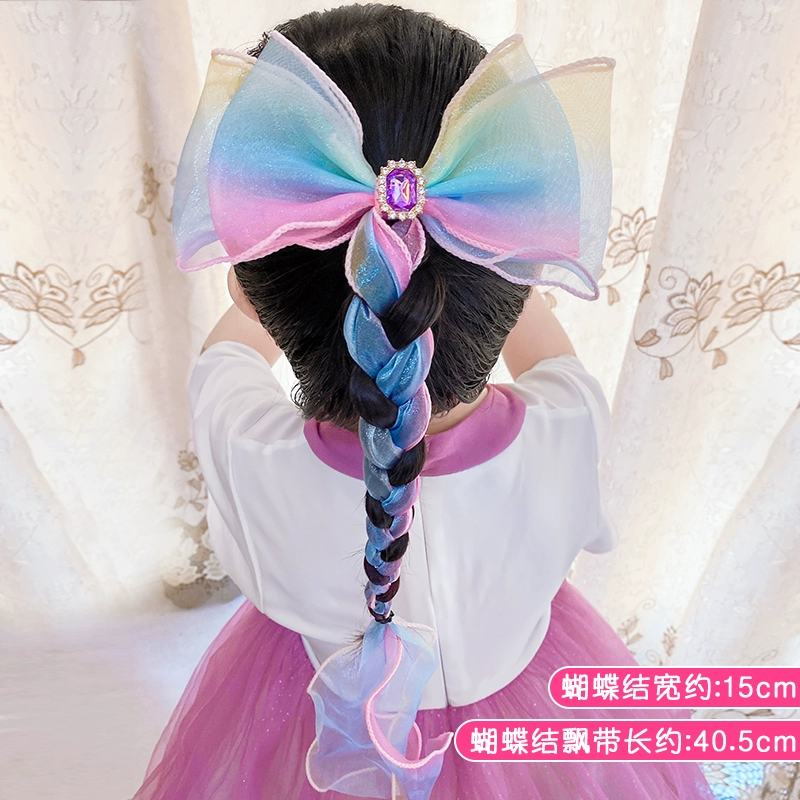 Children’s bow headdress ponytail ice and snow ribbon braided mesh hairpin Princess Elsa hair accessories girls’ hairband