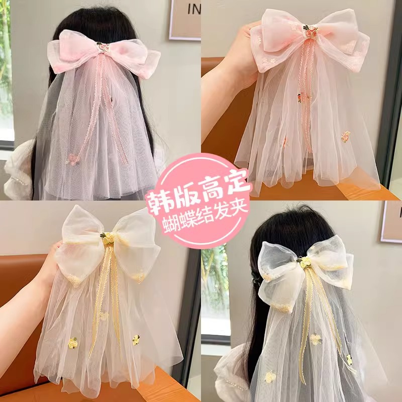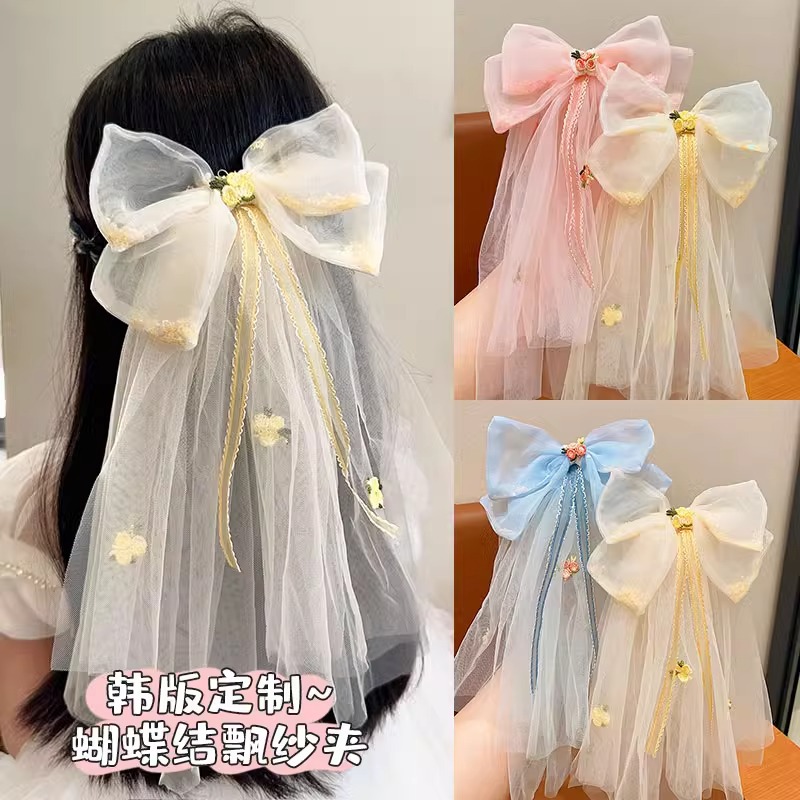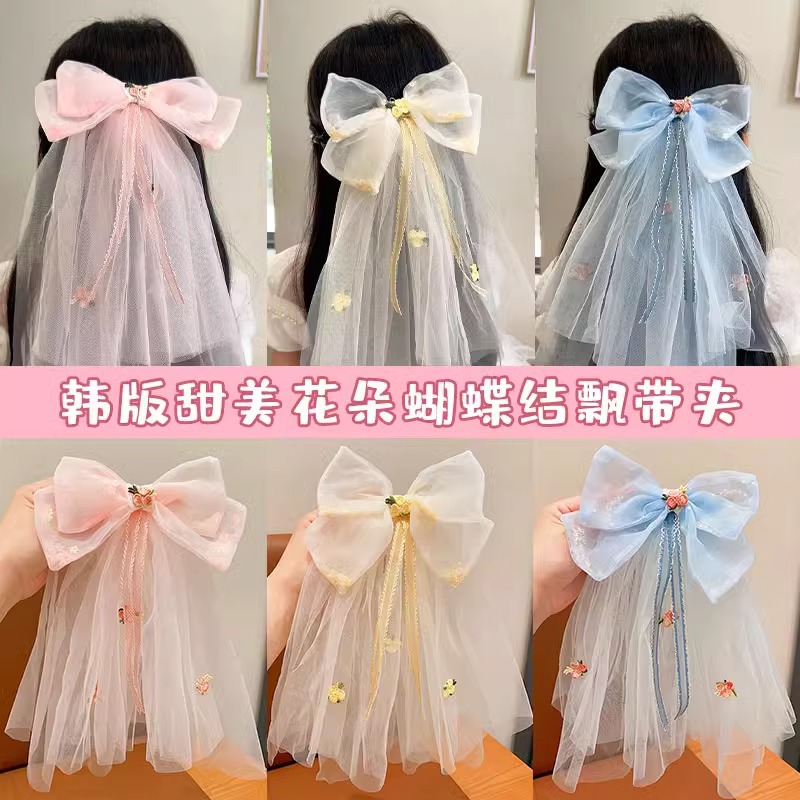 Children's Bow Headwear Hair Accessories Princess Baby's Back Head Hairpin Girl's Flower Ribbon Mesh Hairpin Headwear