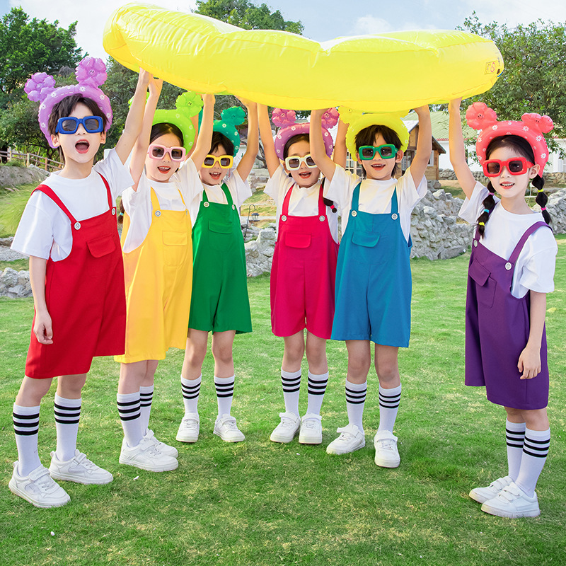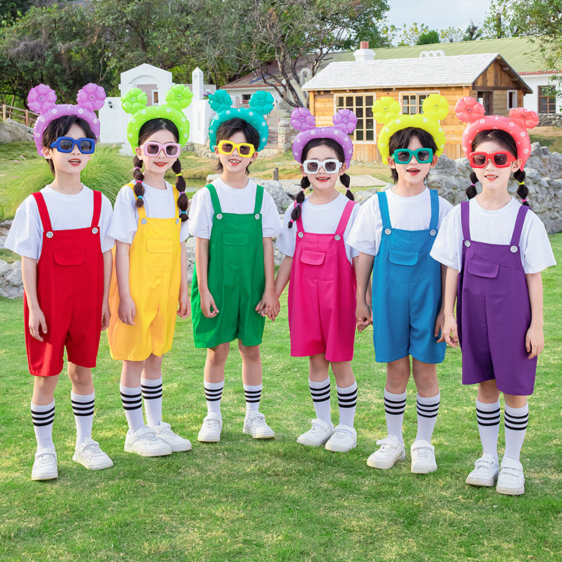 | nameOriginal | Children's Candy-colored Suspender Pants Suit Boys and Girls Colorful Suspender Pants Table Performance Suit Spring and Summer Games |