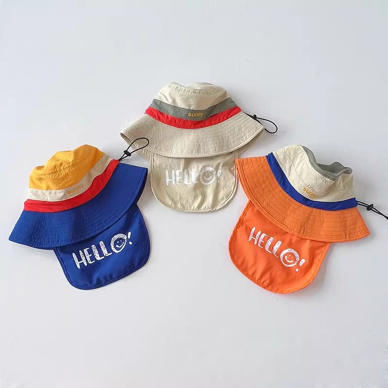 | nameOriginal | Children's Cape Hat Summer Sunshade Thin Color-matching Neck Embroidered Sunshade Hat for Boys and Girls Baby Beach Fisherman Hat |
