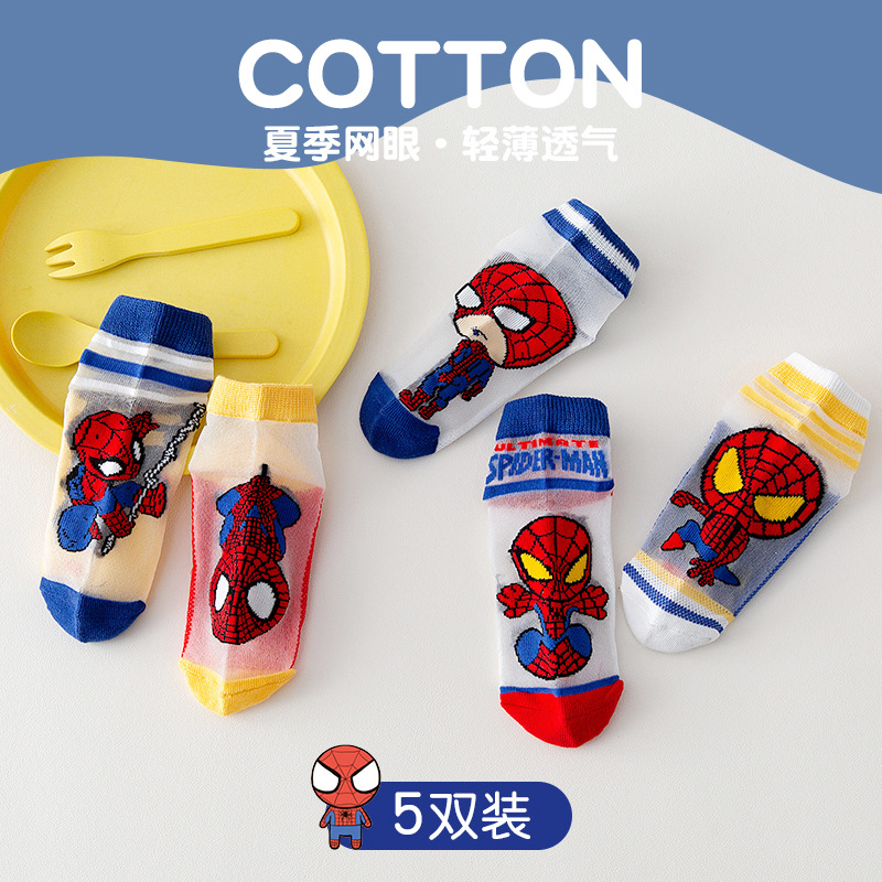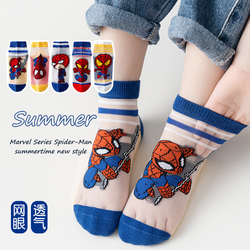 | nameOriginal | Children's card stockings summer thin boys' mesh Ice Silk Spider-Man socks cartoon baby socks children's socks |
