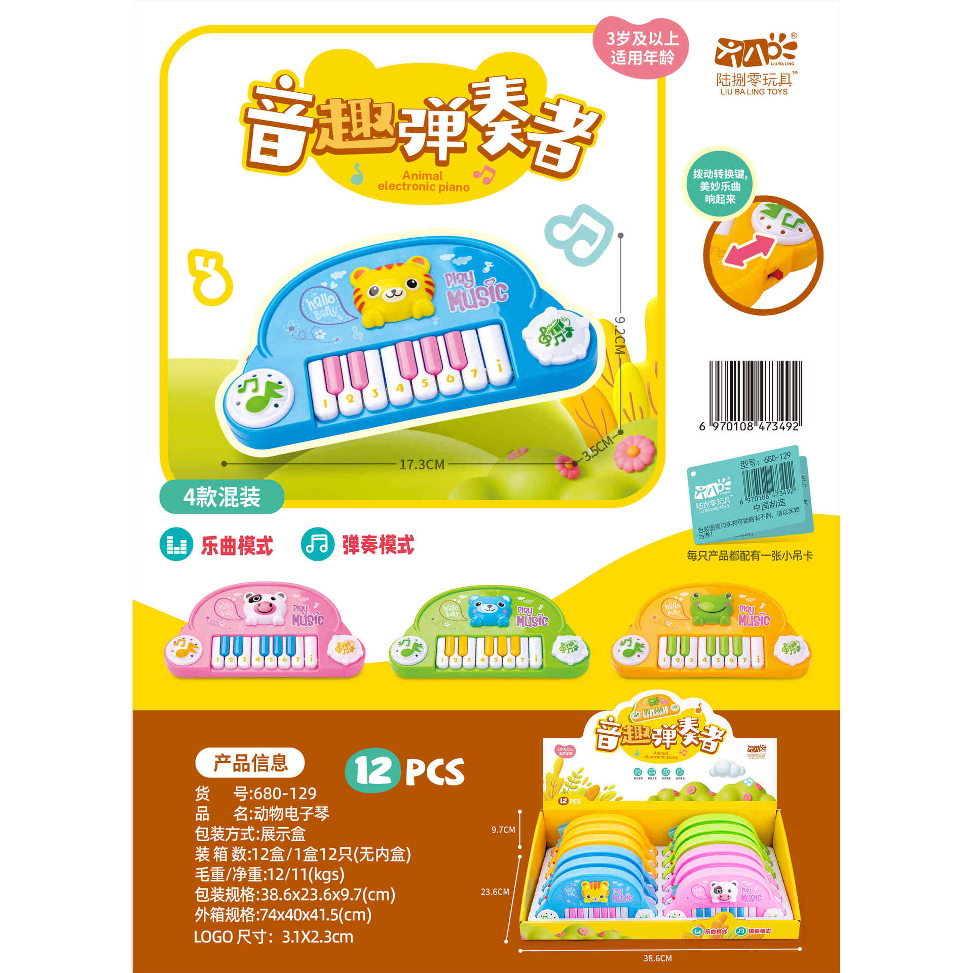 | nameOriginal | Children's cartoon animal tiger pig frog 22 key light piano electronic organ music toy playing music |
