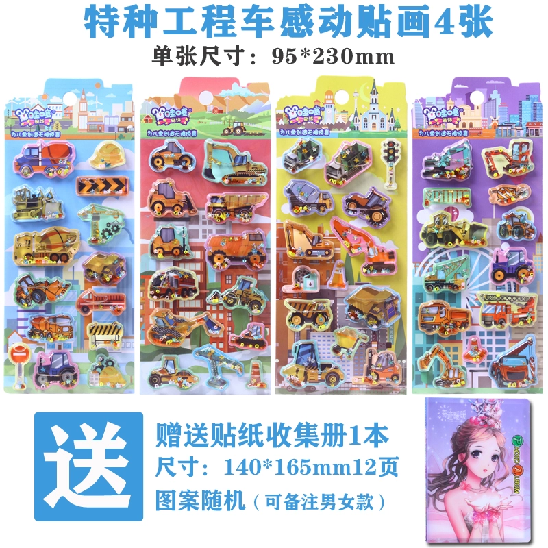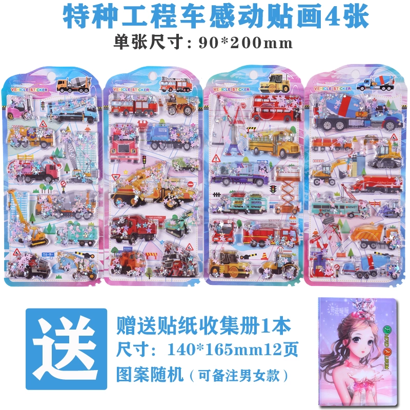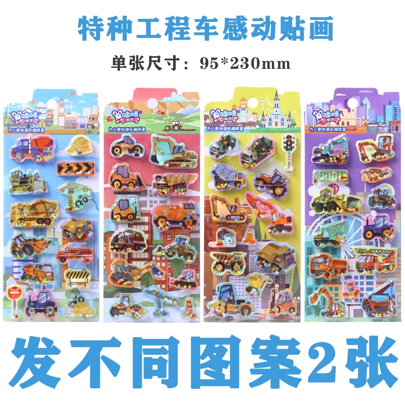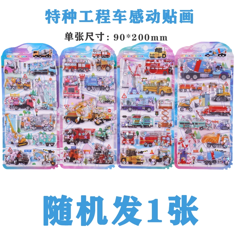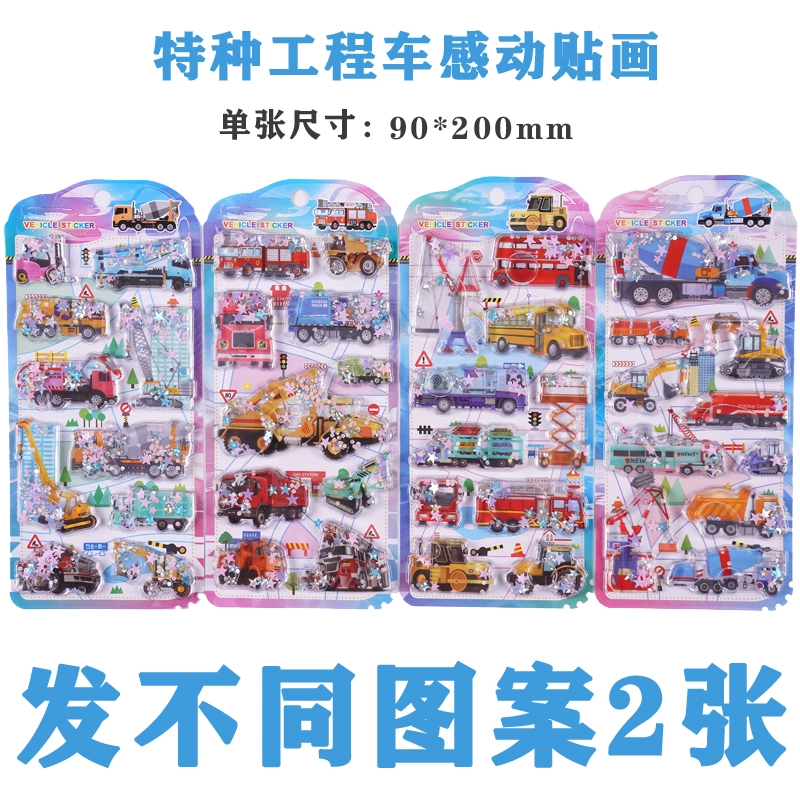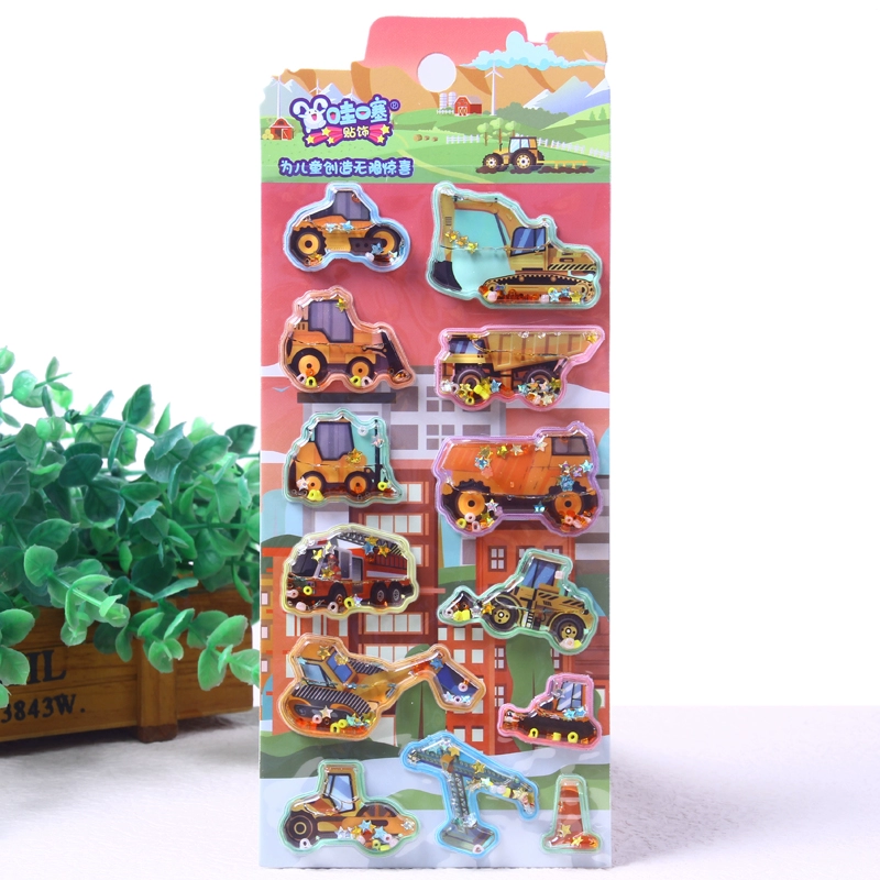 | nameOriginal | Children's cartoon crystal transportation engineering car three-dimensional shaker with water sticker boy reward sticker |