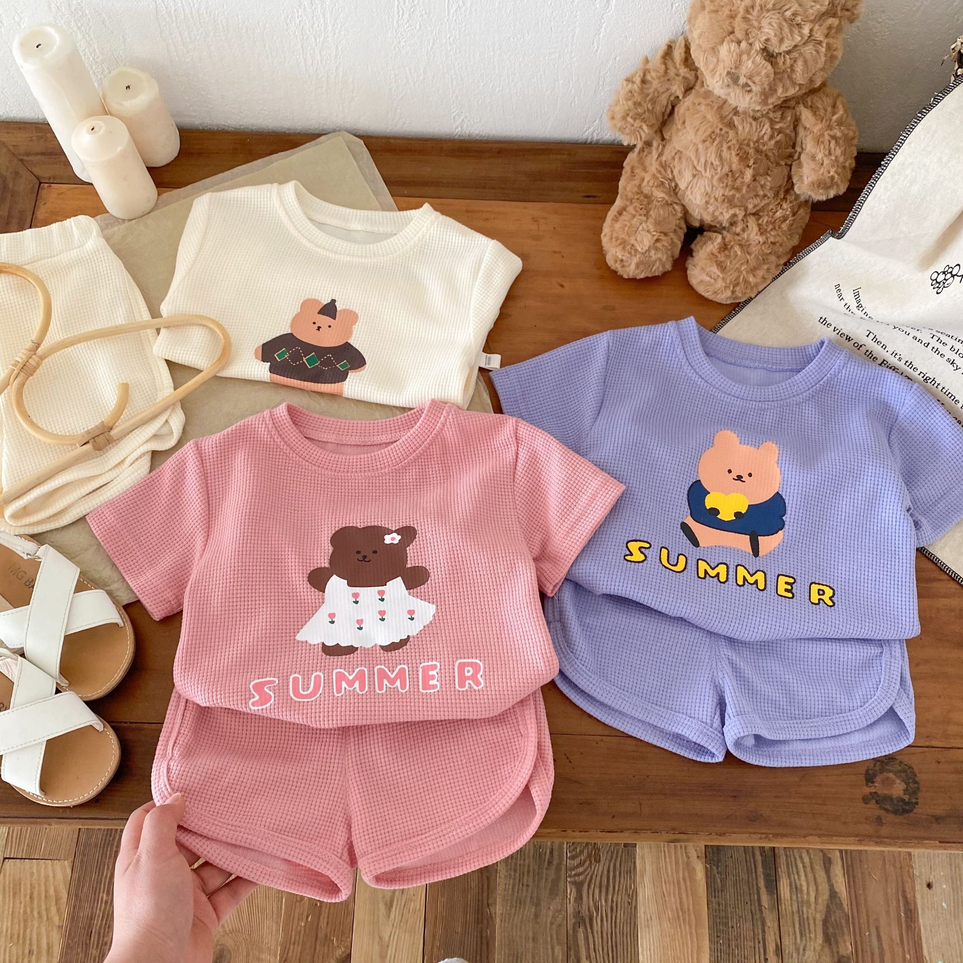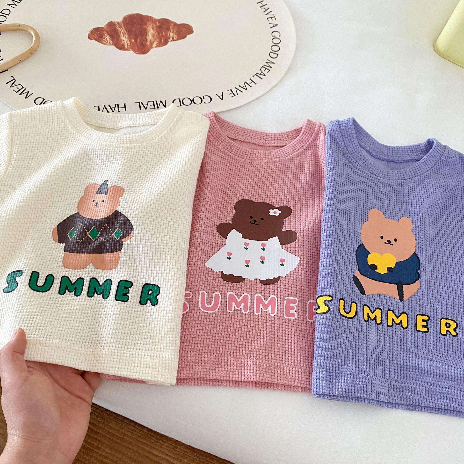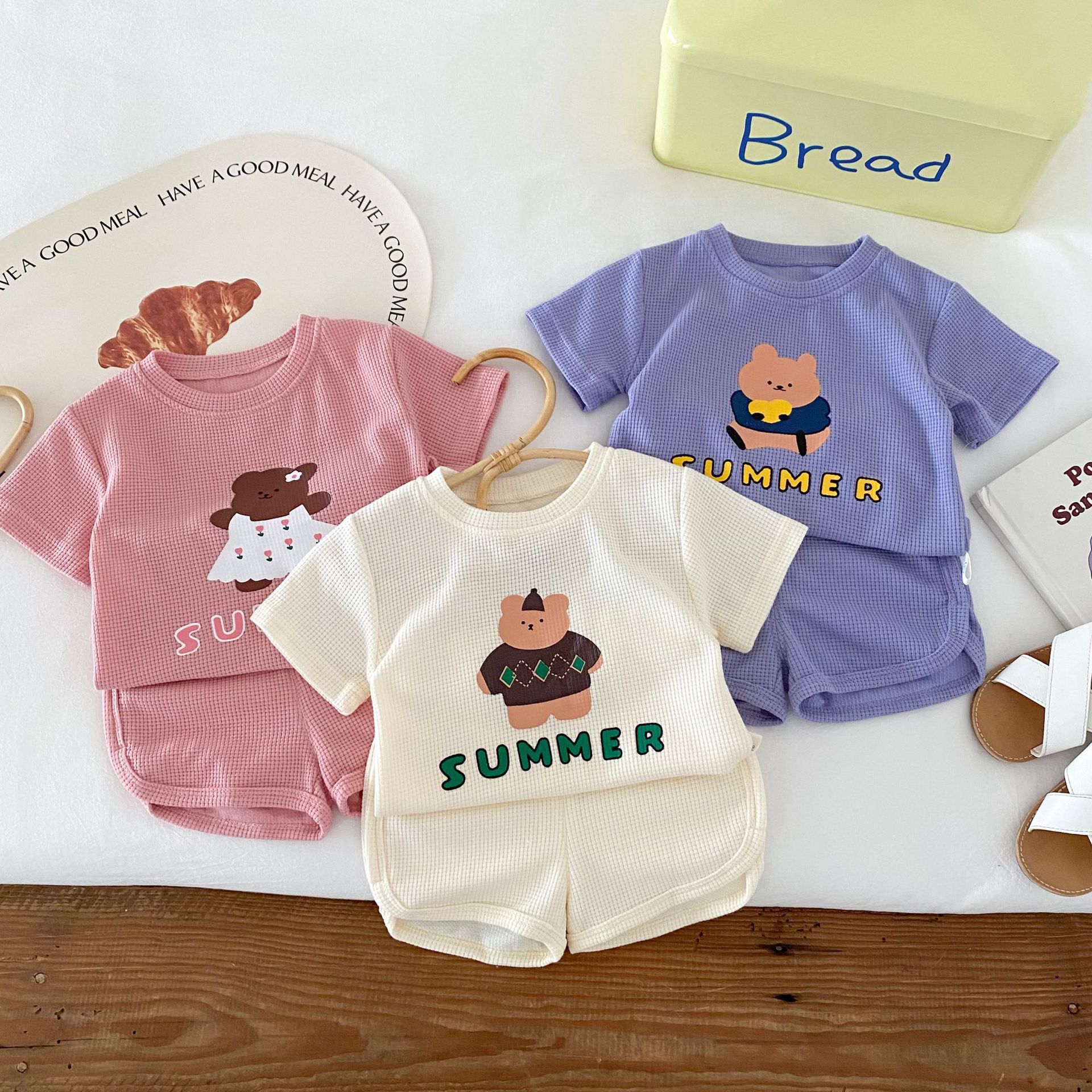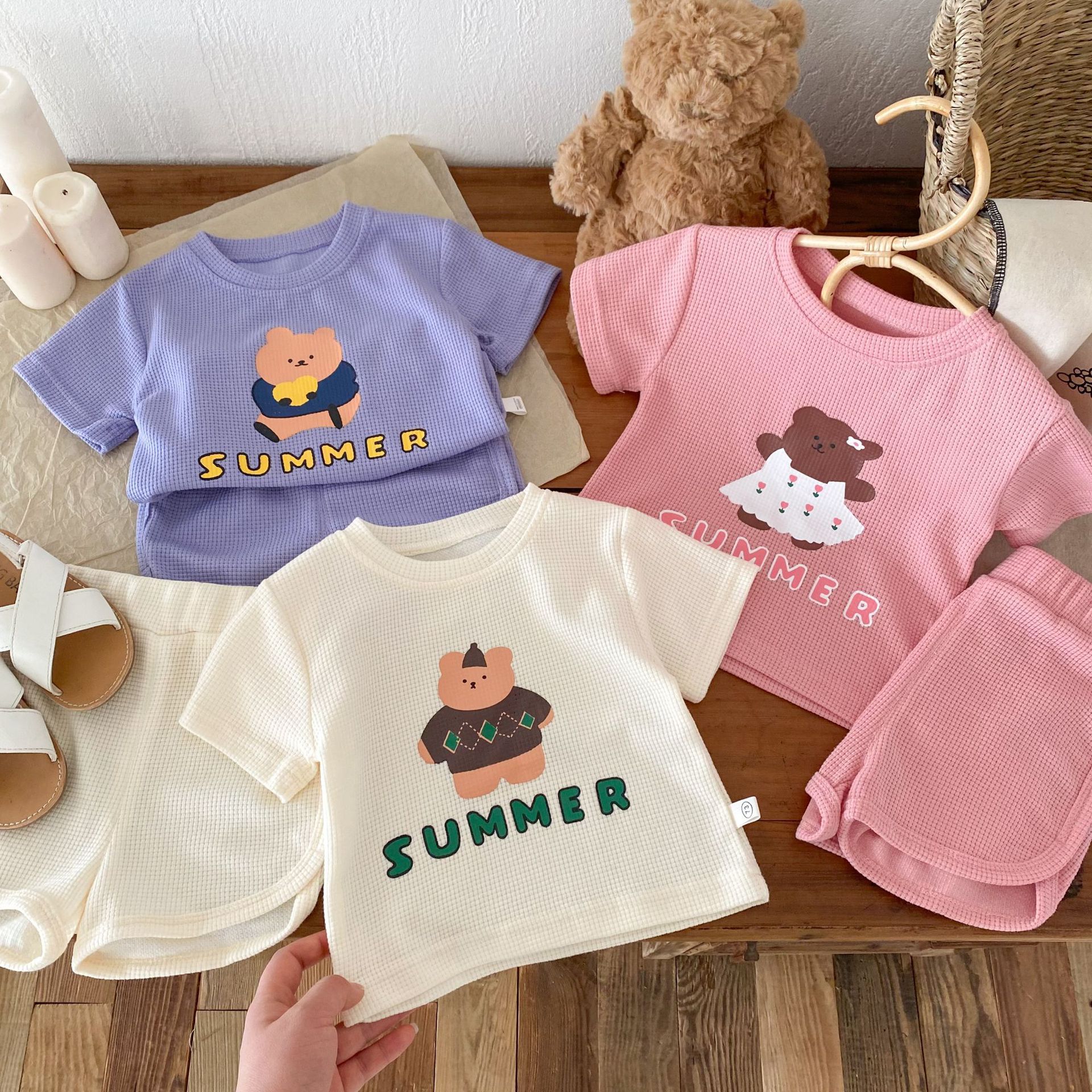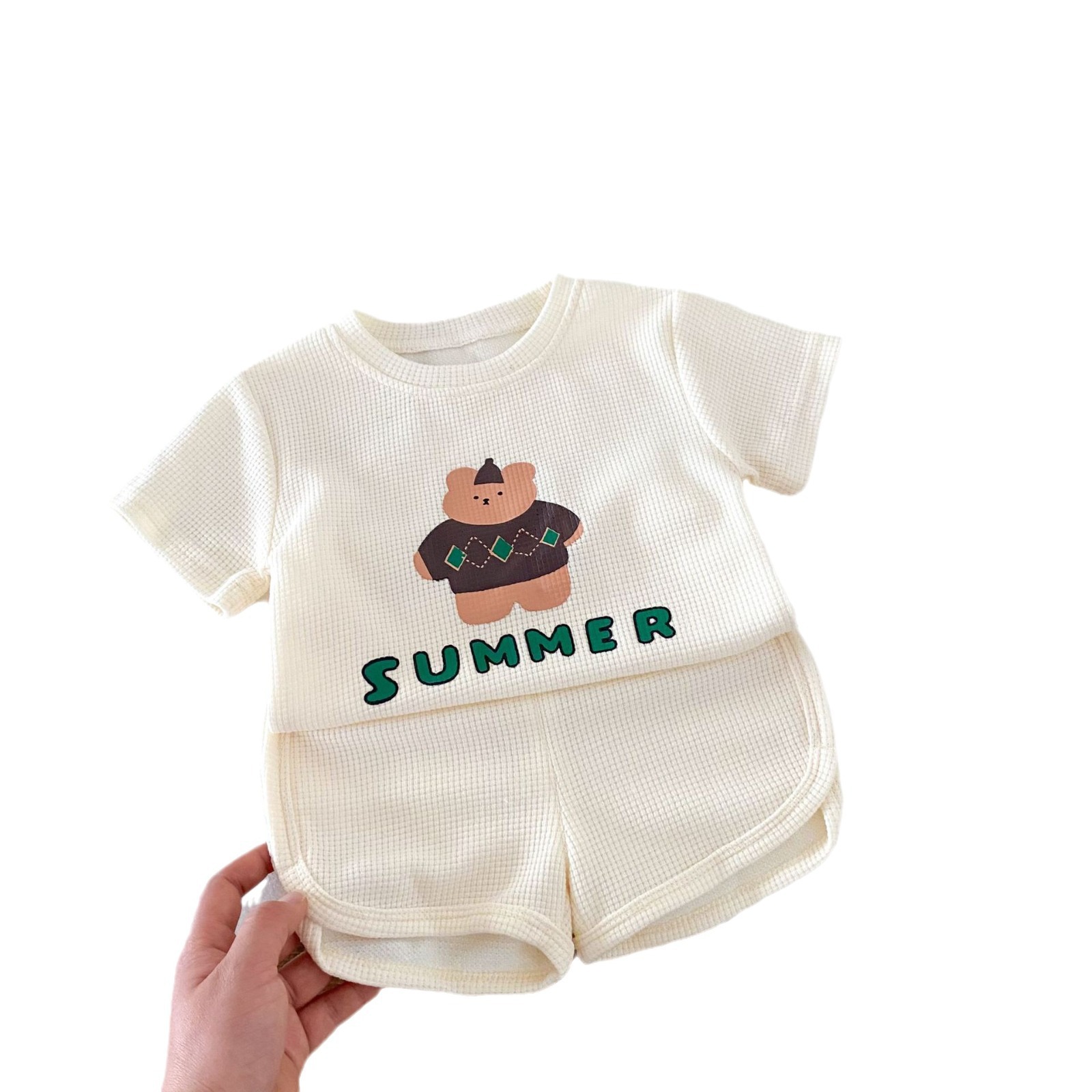 Children's Cartoon Set 0-5 Years Old Boy Summer Waffles Cute T-Shirt Baby Girl Shorts Two-Piece Set AT021