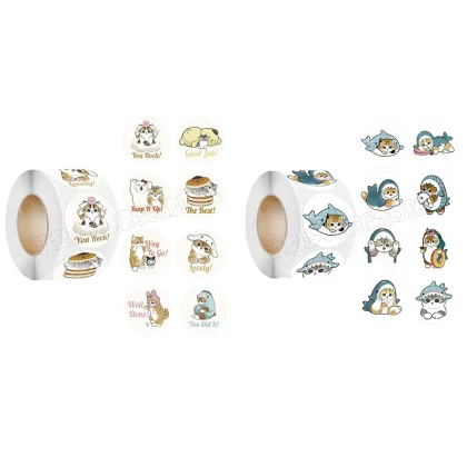 | nameOriginal | Children's cartoon stickers cute cat shark toy handbook material decorative round stickers self-adhesive stickers |
