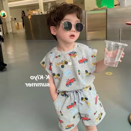 nameOriginal | Children's cartoon summer suit baby waistcoat vest T-shirt casual shorts boys fashionable thin two-piece set trendy |