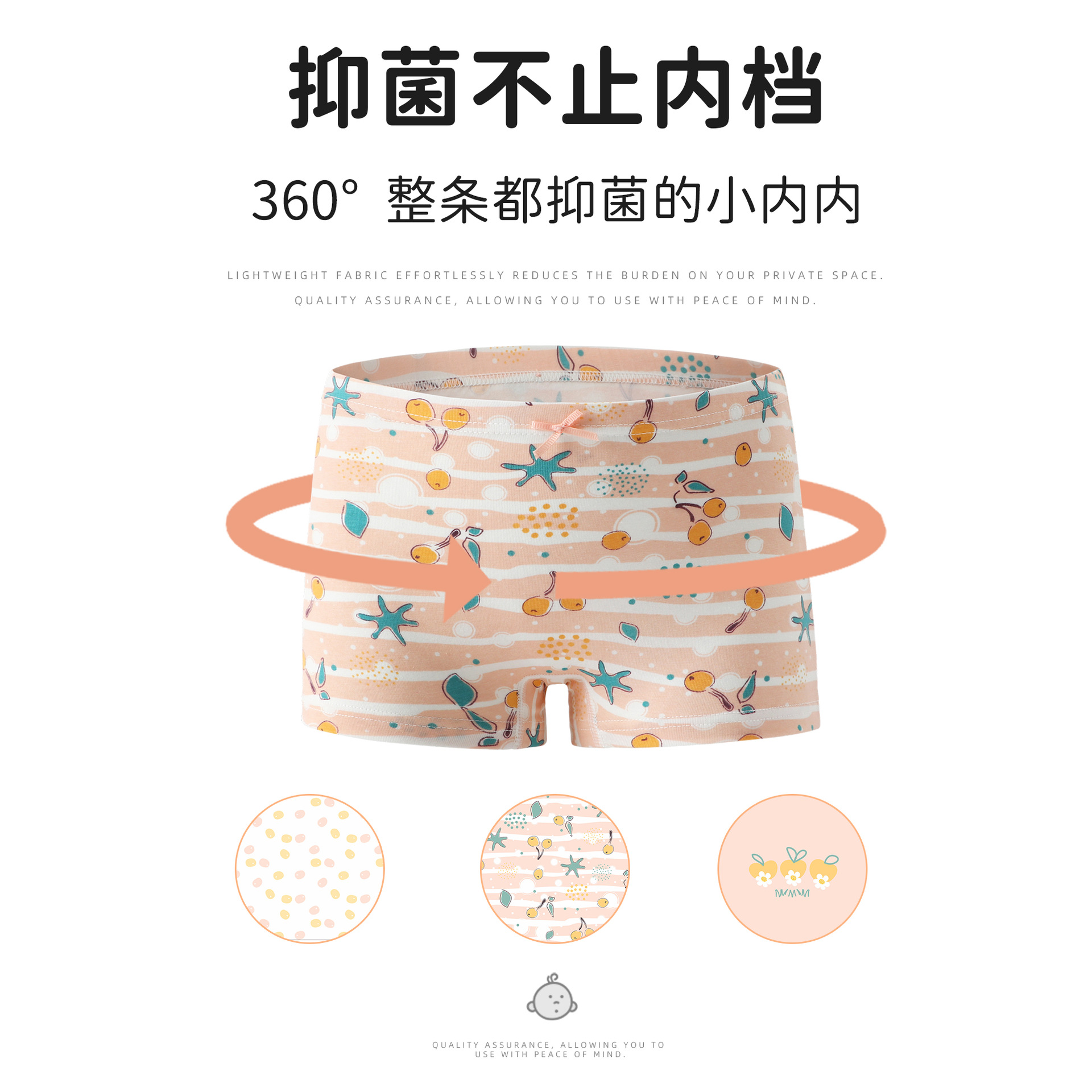 | nameOriginal | Children's cartoon underwear women's class A pure cotton antibacterial boxers medium and small children's big children do not clip butt boxers |