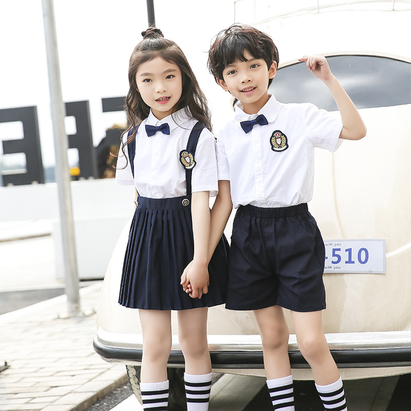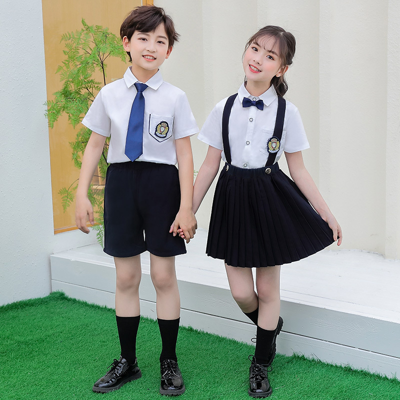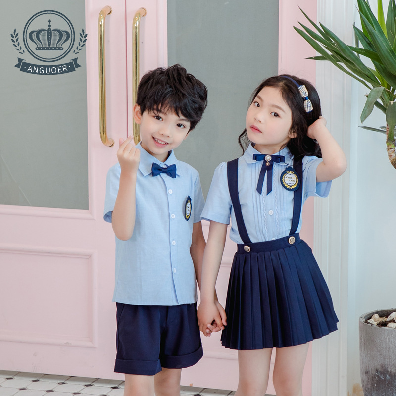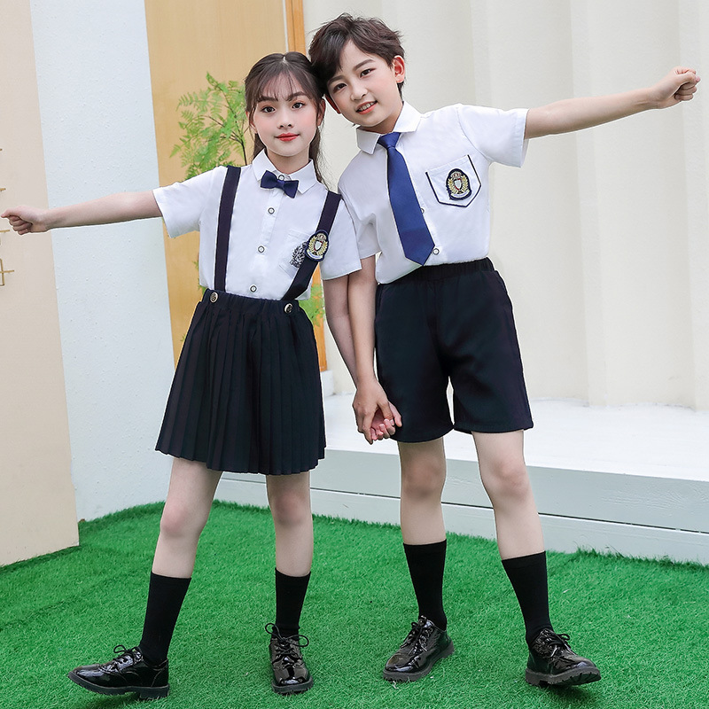 Children’s Children’s Graduation Performance Clothing Kindergarten Garden Clothing Summer School Uniform Short-sleeved Shirt British Style Strapback Skirt suit