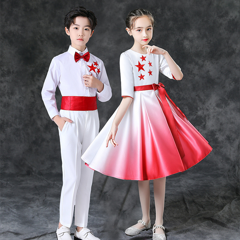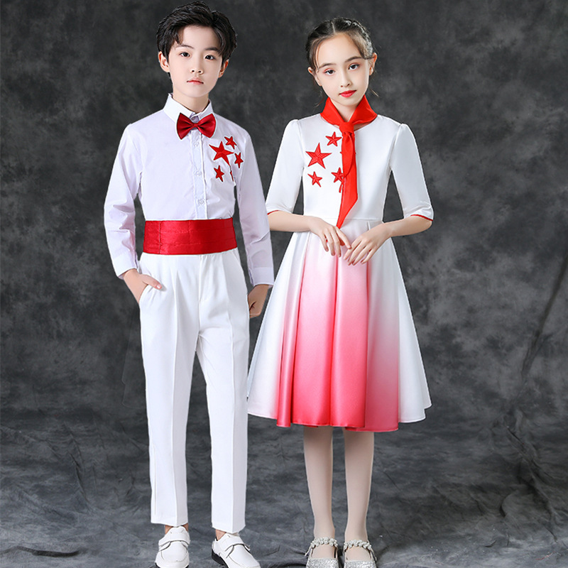 Children's Chorus Clothing May Day Performance Poetry Recitation Men's and Women's Competition Red Scarf Red Star Performance Clothing Primary and Secondary School Students
