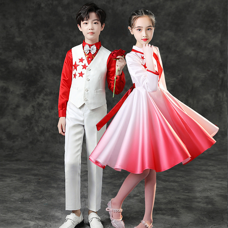 Children's Chorus Clothing May Day Performance Poetry Recitation Men's and Women's Competition Red Scarf Red Star Performance Clothing Primary and Secondary School Students