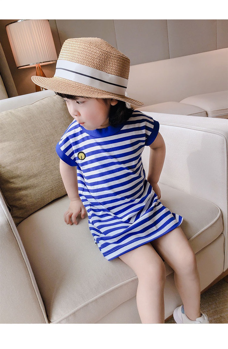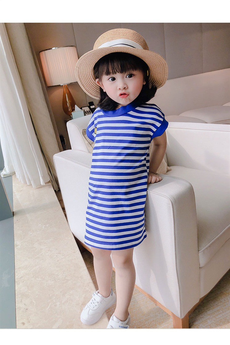 | nameOriginal | Children's Clothing 2021 Summer New Girl Baby Navy Blue Striped Sleeveless T-Shirt Dress 96187 |