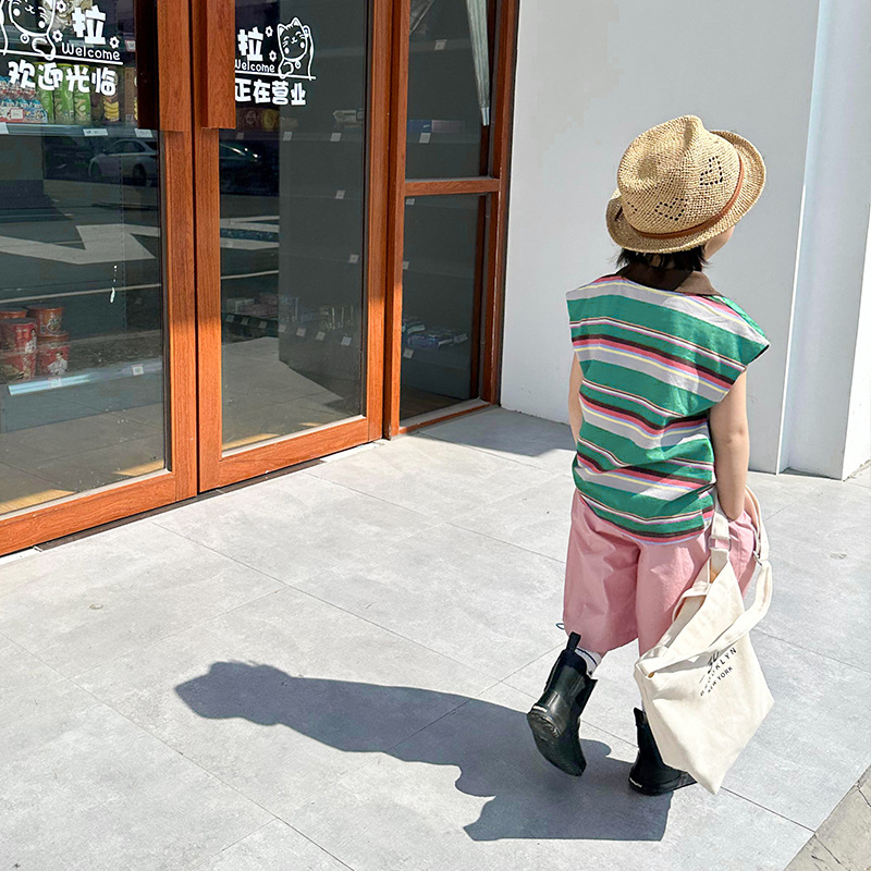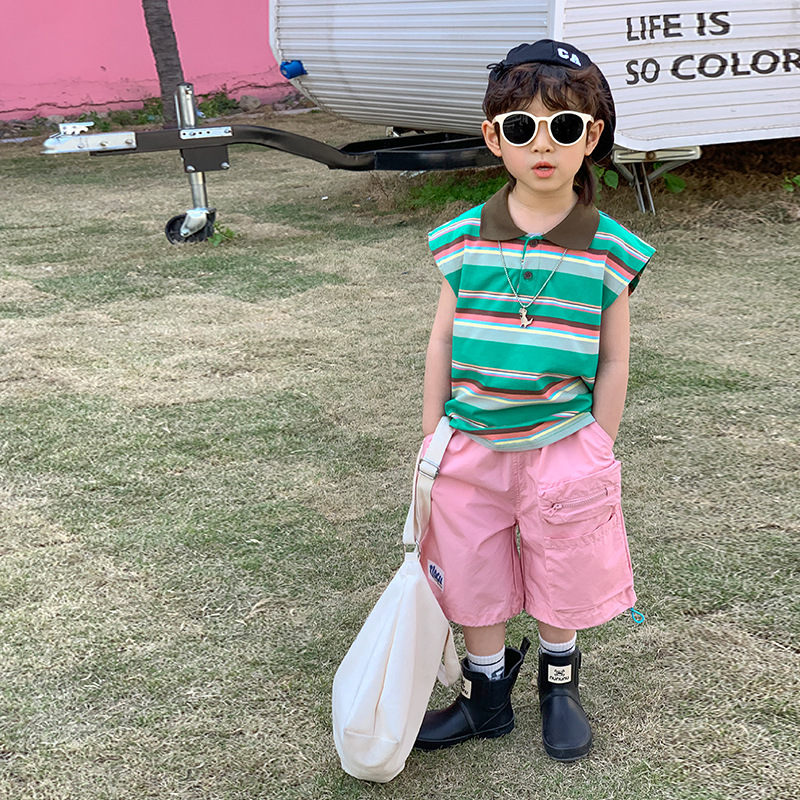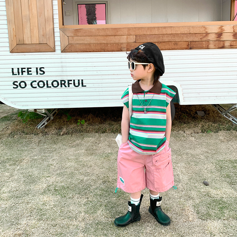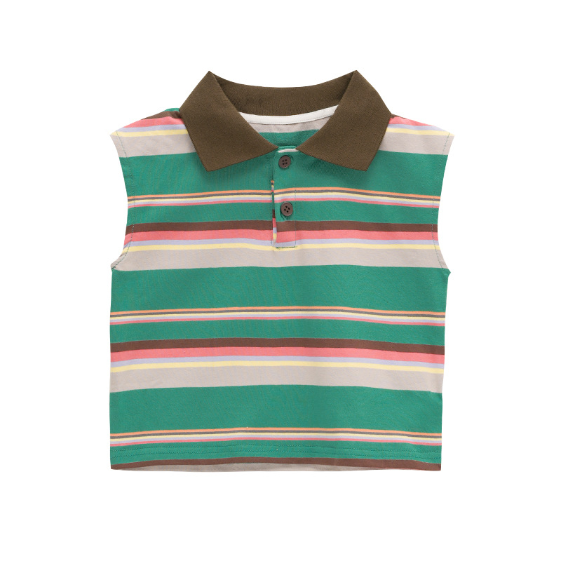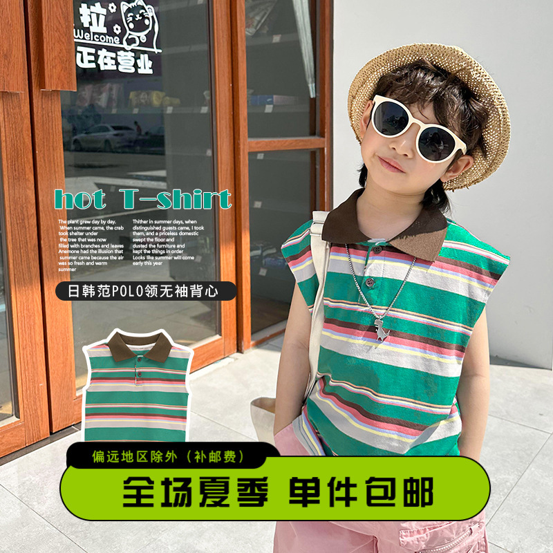 | nameOriginal | Children's clothing 2024 Summer new boys' striped contrast color Polo collar outer vest children's T-shirt sleeveless top fashion |