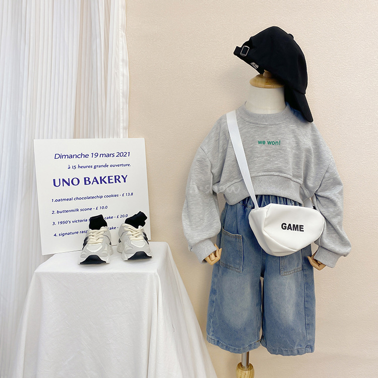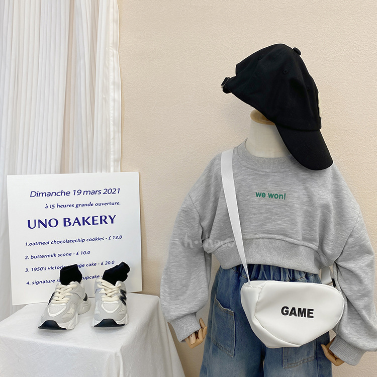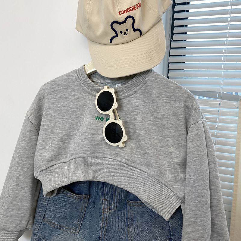 Children's Clothing Autumn Girls' Grey Short Sweatshirt Baby Girl's Printed Stylish Top Children's Tall Long-Sleeved Trendy 0075