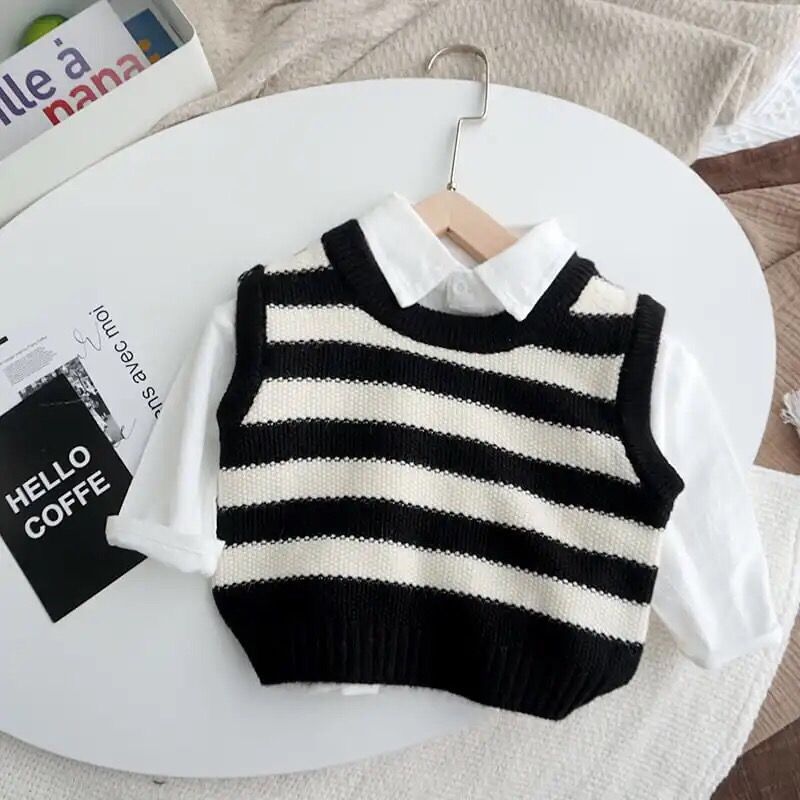 | nameOriginal | Children's clothing baby striped knitted vest 2024 boys and girls western style sweater outer wear children's autumn clothes baby waistcoat |