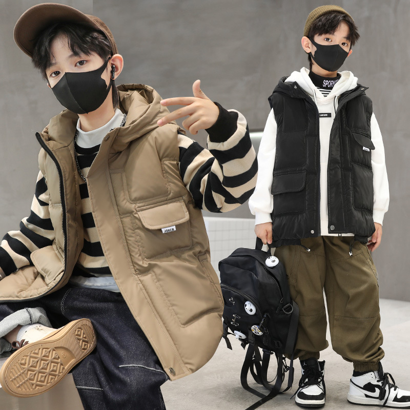 | nameOriginal | Children's clothing boys' autumn and winter cotton vest 2023 new children's winter clothing thickened hooded handsome medium and big children's coat fashion |