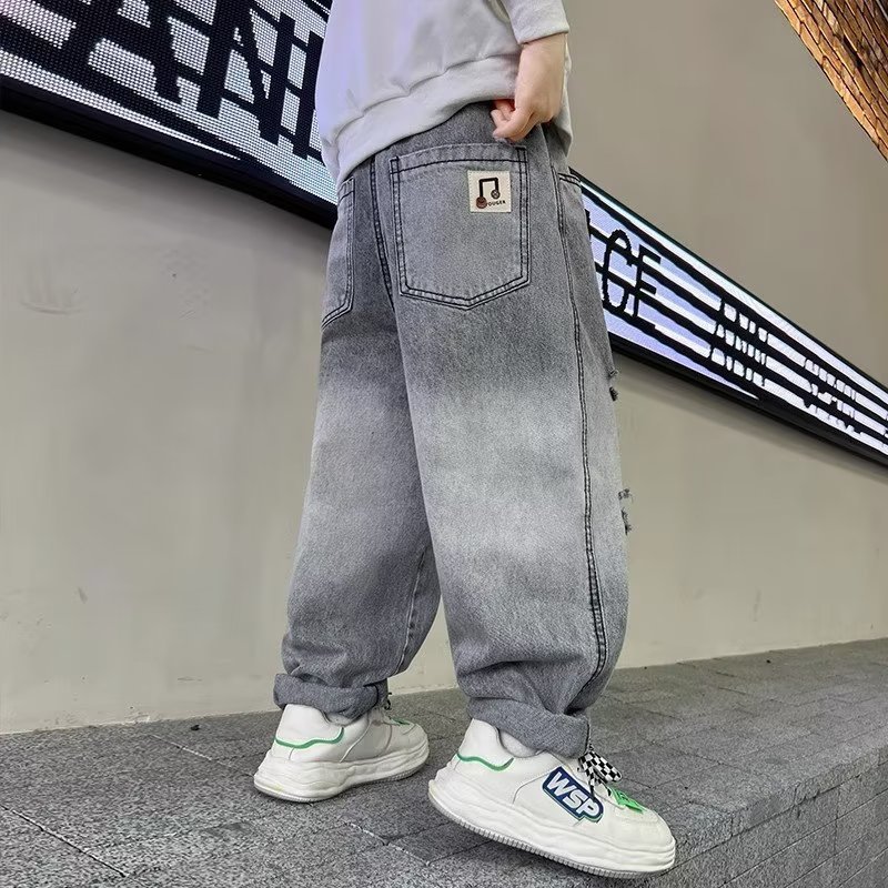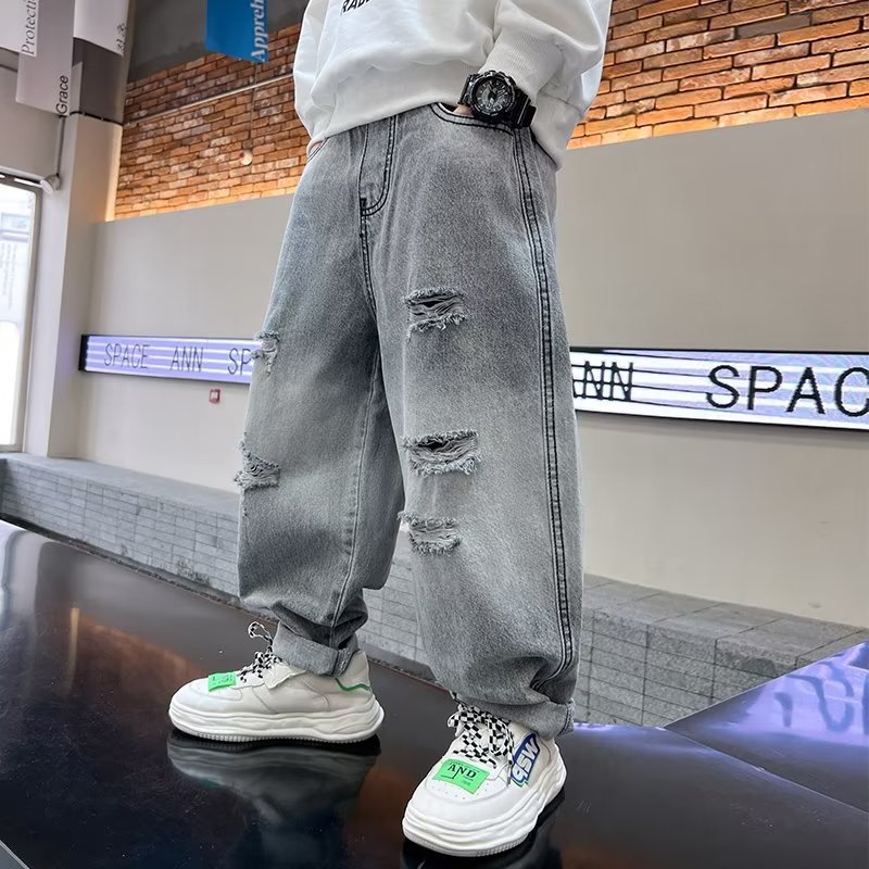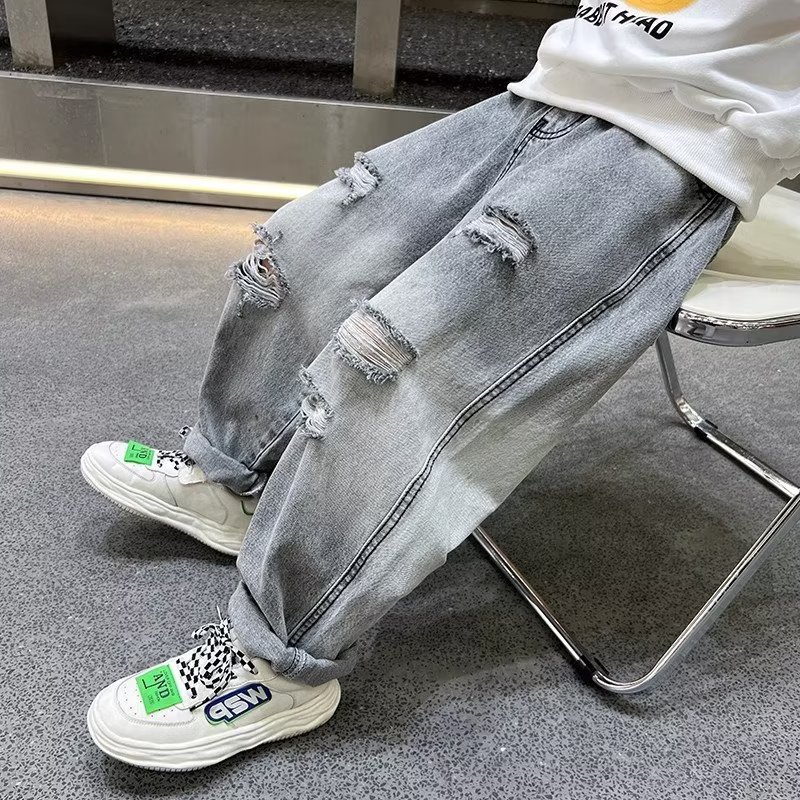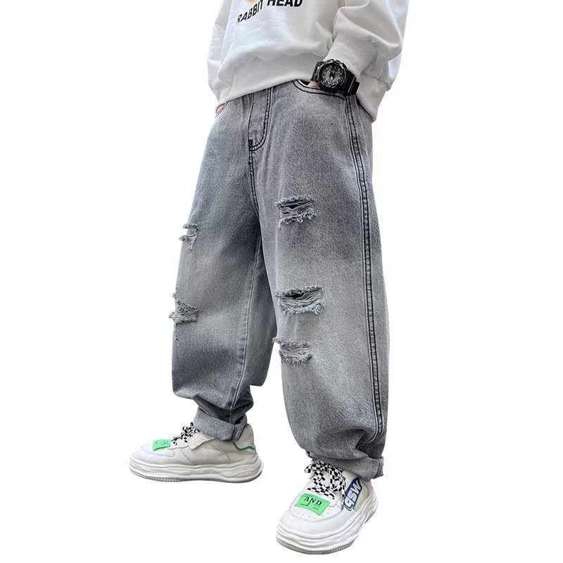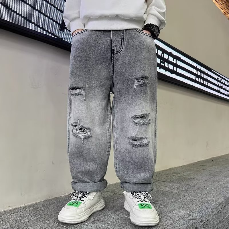 | nameOriginal | Children's clothing boys' autumn handsome ripped jeans loose all-match pants 2023 new spring medium and large children's pants |