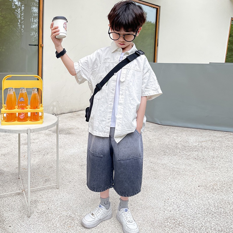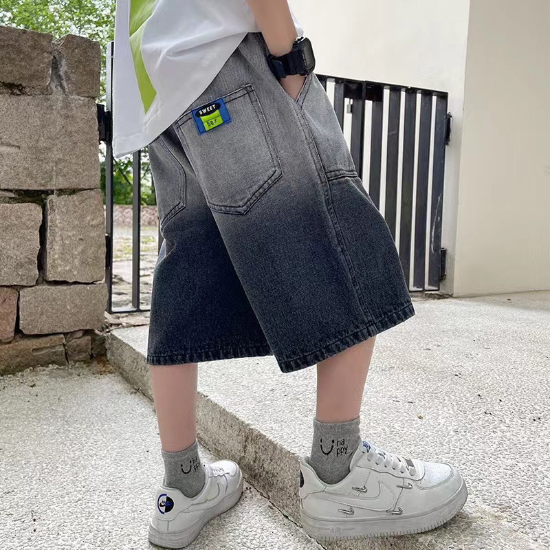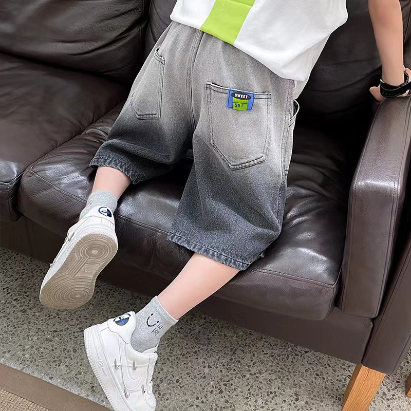 Children's Clothing Boys' Denim Shorts Boys Korean Style Mid-length Pants Children's Capri Pants Fashionable Brand Loose Five-length Pants Summer Thin