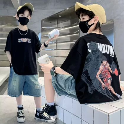 | nameOriginal | Children's clothing boys summer t-shirt 2024 new medium and large children summer short-sleeved boys anime half-sleeved tops trendy brand t |