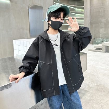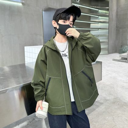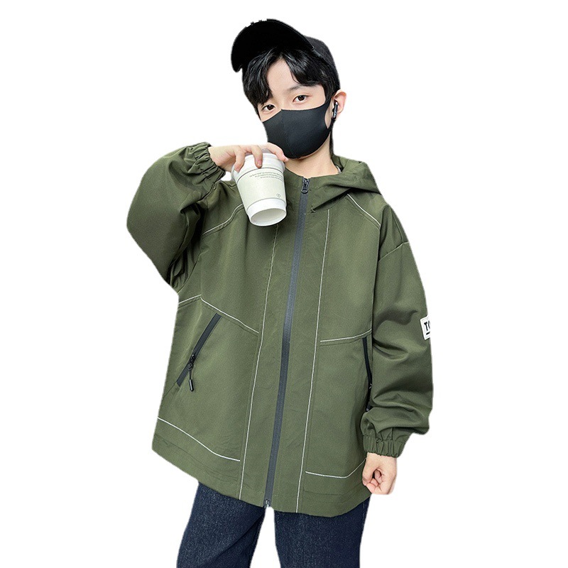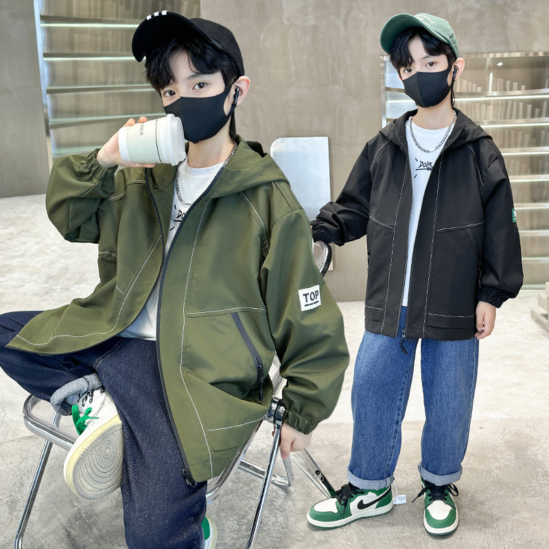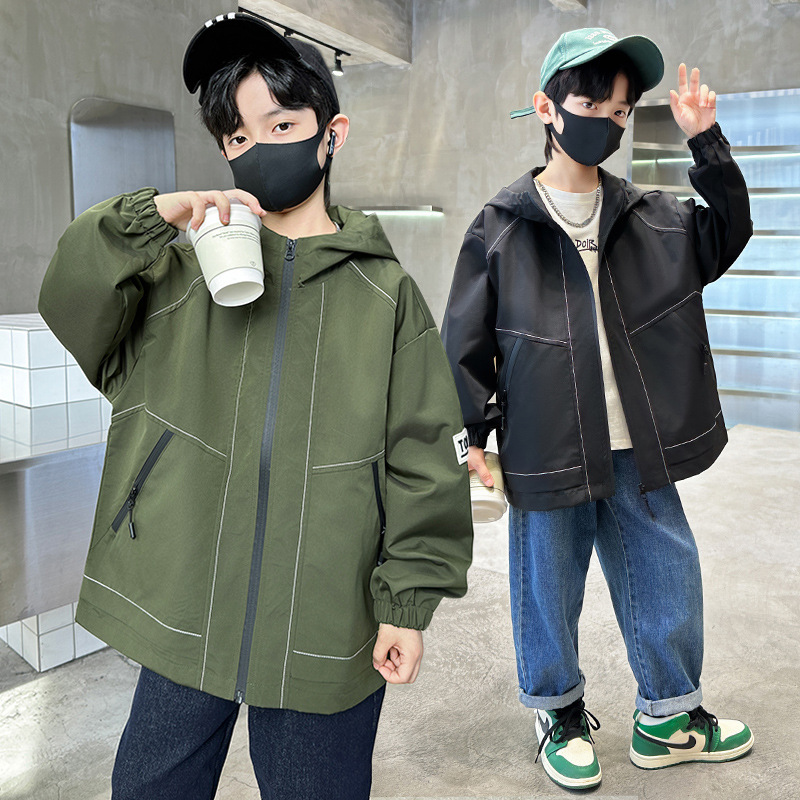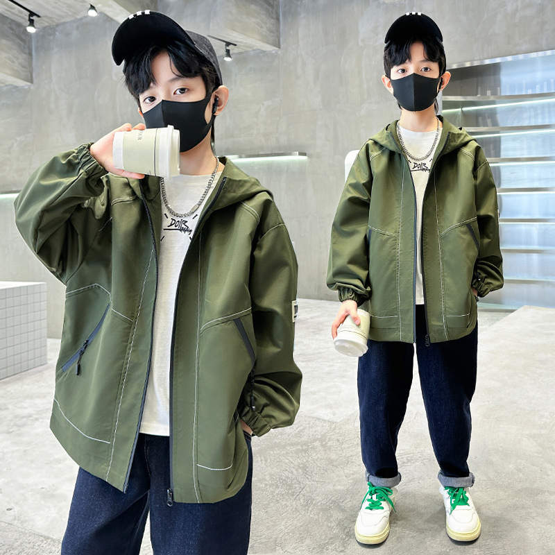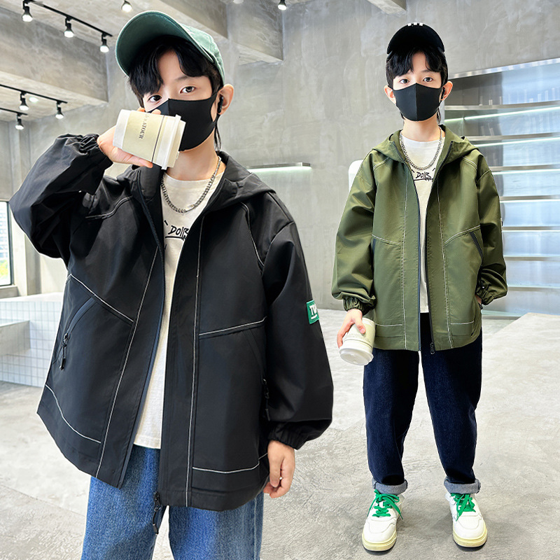 Children’s clothing coat spring clothing boys new large children’s letter hooded trench coat 2024 children’s sports coat wholesale tide