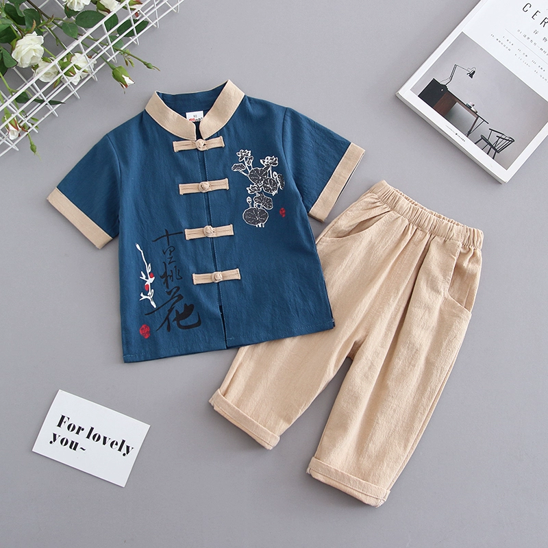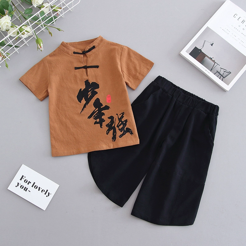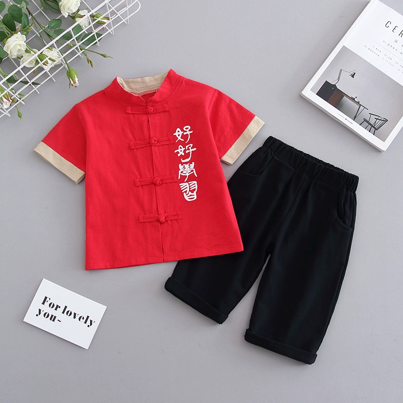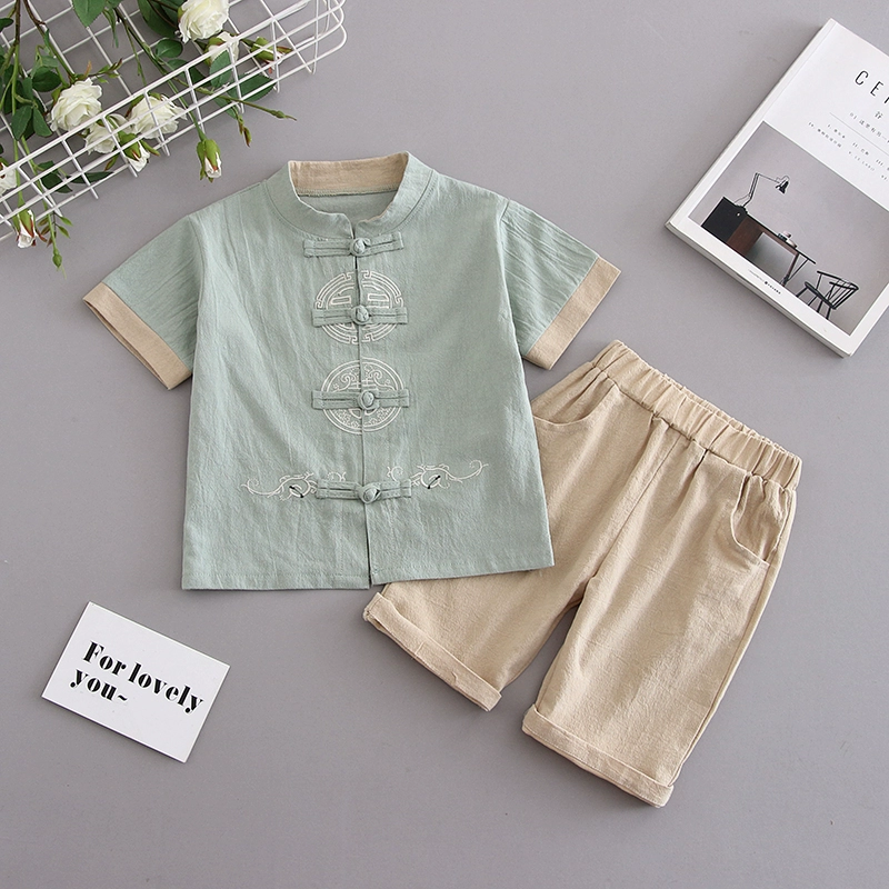 Children’s clothing, cotton and linen short sleeves 2024 new Korean summer clothing