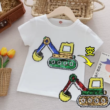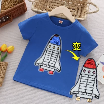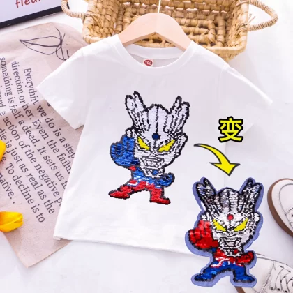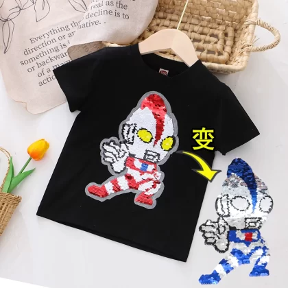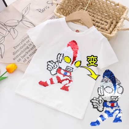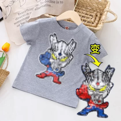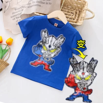 | nameOriginal | Children's clothing flashing color-changing cartoon round neck short-sleeved T-shirt |