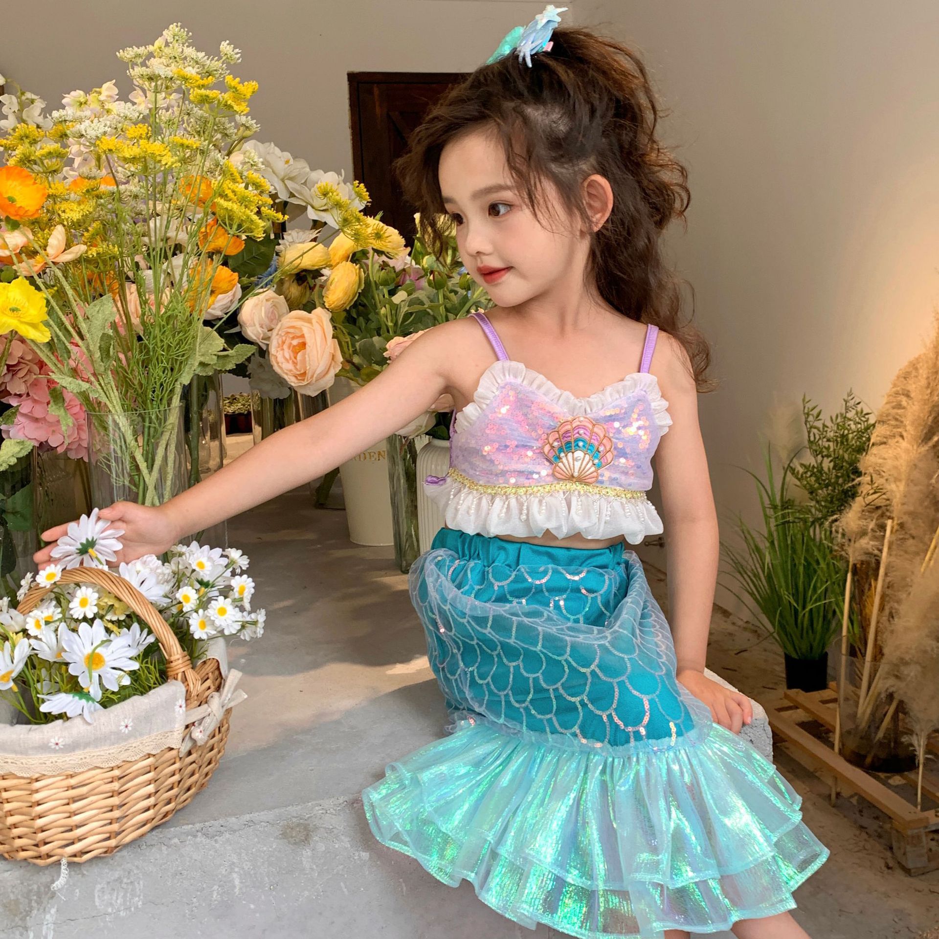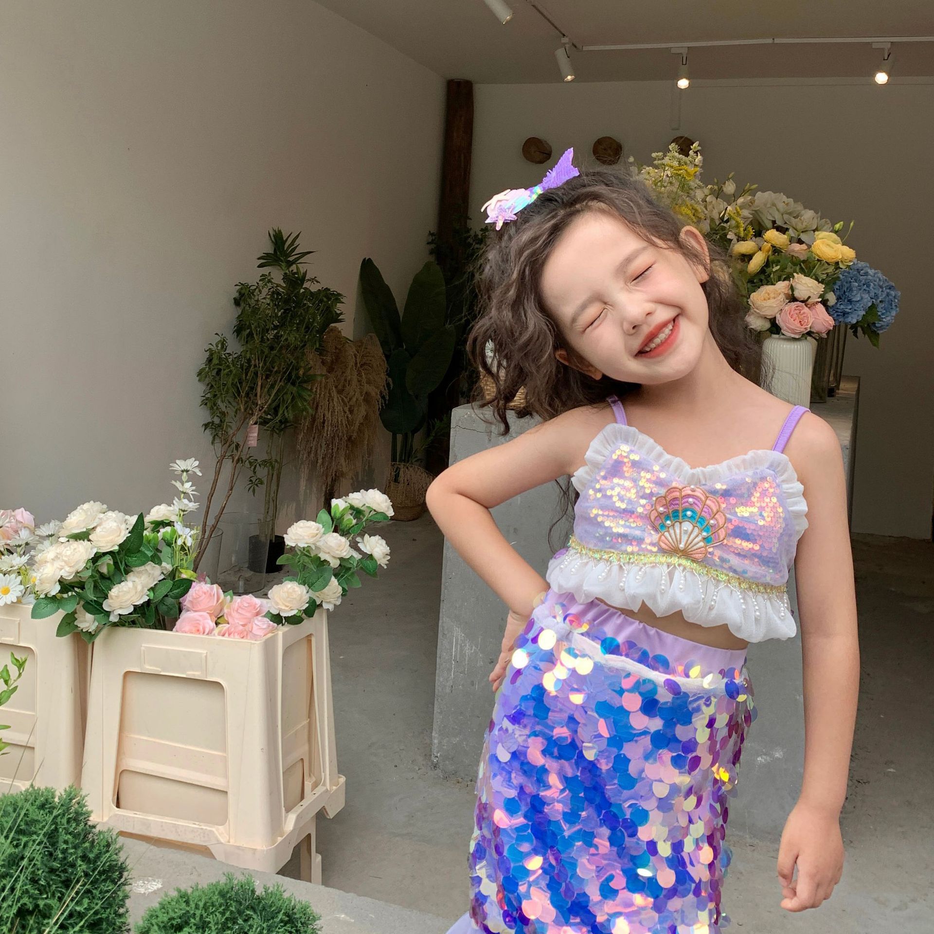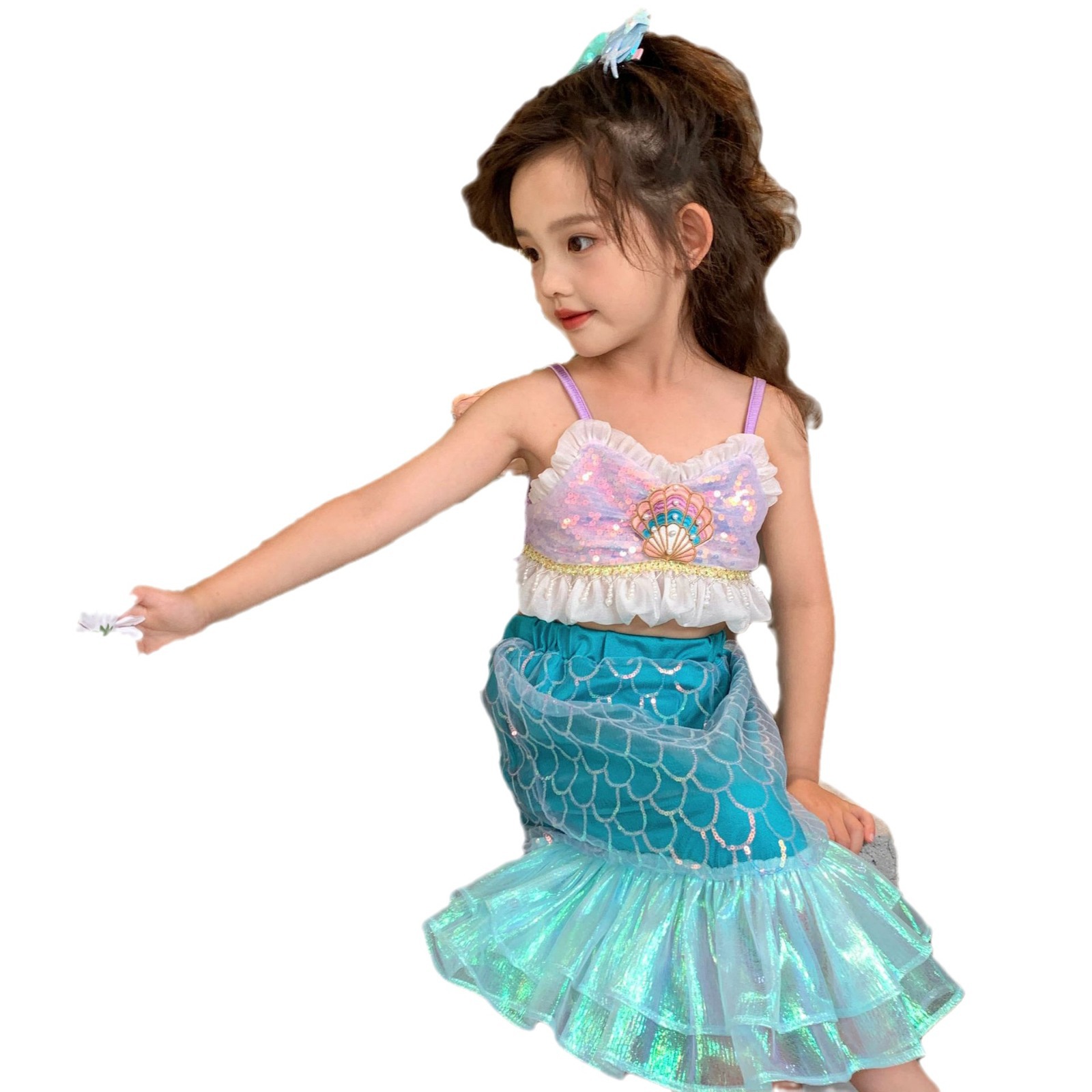 Children’s clothing girls’ mermaid princess sequined sling children’s sleeveless mermaid princess fishtail Western style children’s skirt summer suit
