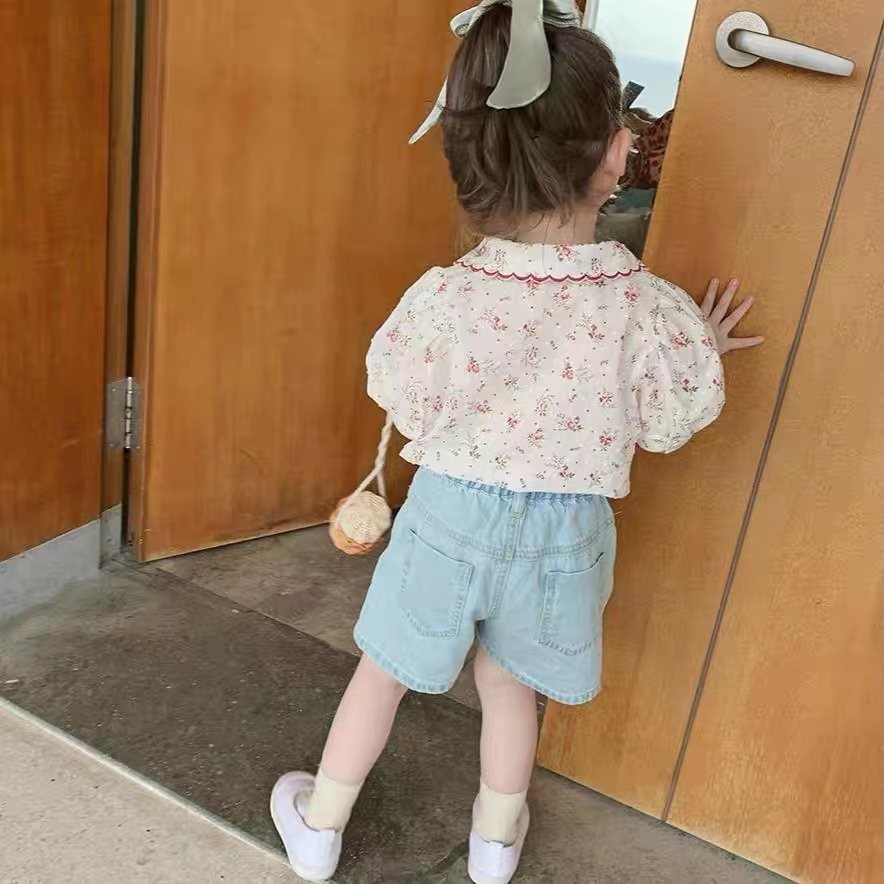 Children's Clothing Girl's Vintage Cotton Shirt Children's Summer Dress Floral Western Style Shirt Baby's Short-sleeved Top Thin Doll Shirt