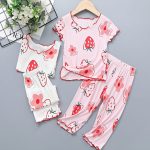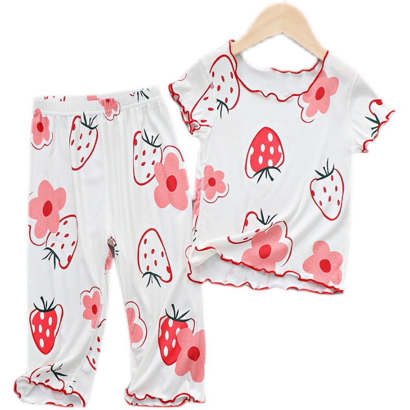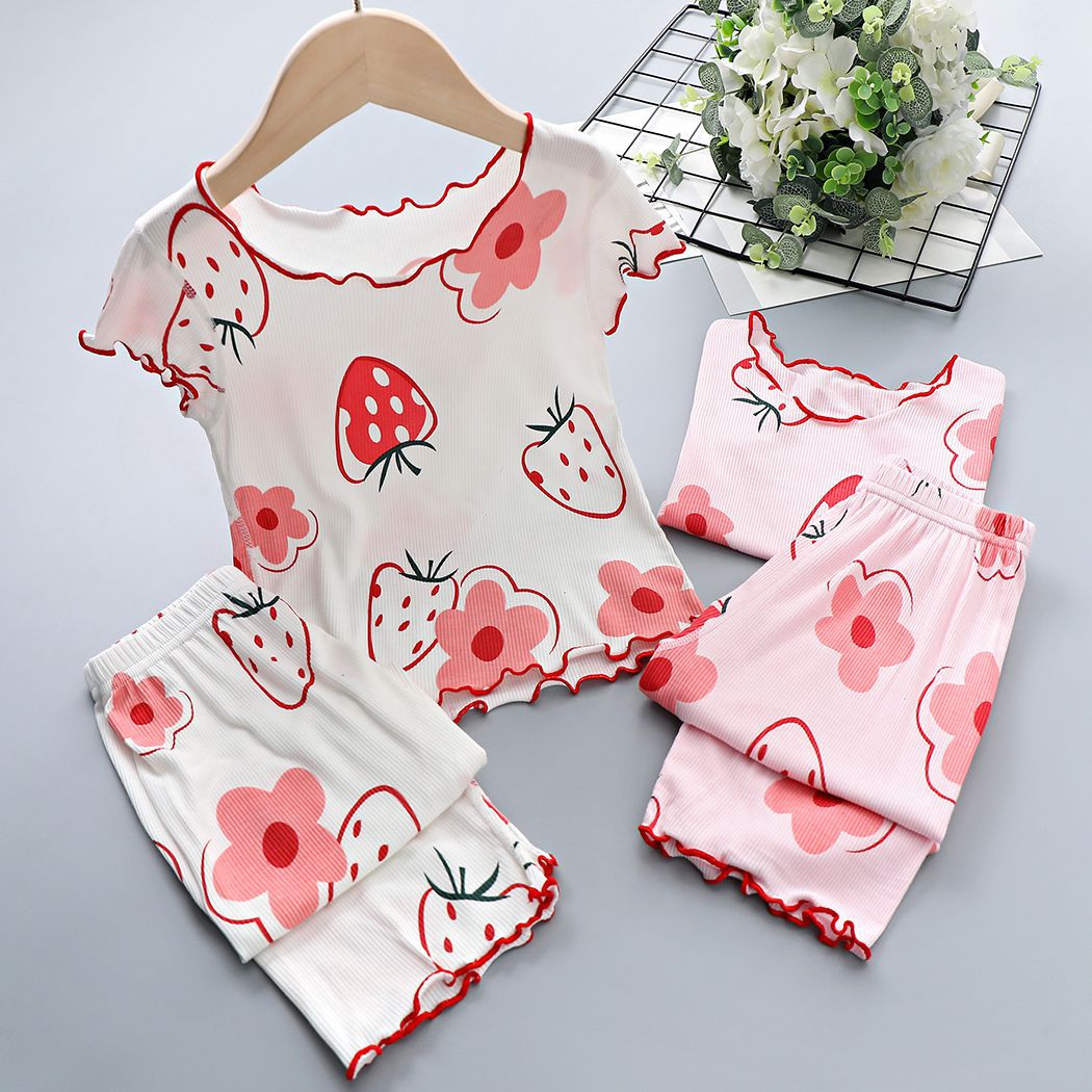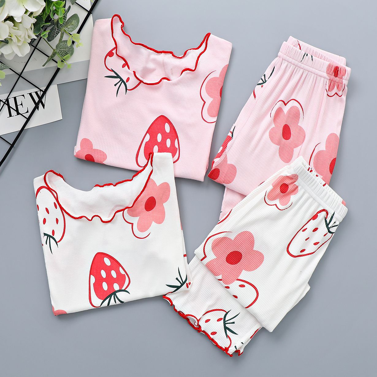 Children’s Clothing Ice Silk Summer Suit Big Children’s Home Air-conditioning Suit Cute Fashion Two-piece Girls’ Pajamas Baby Trendy