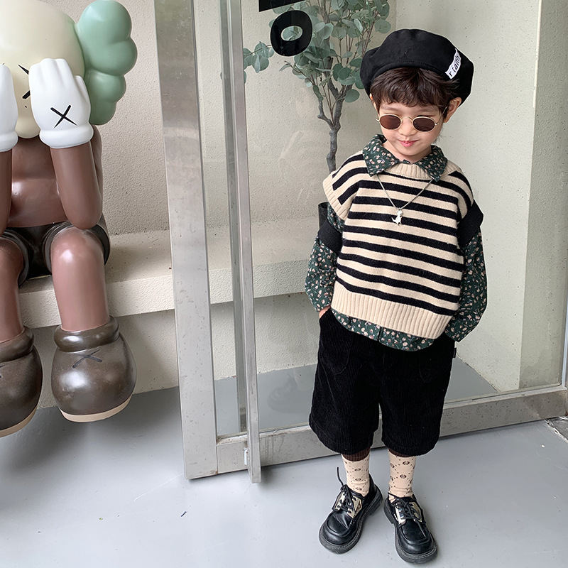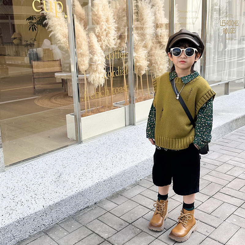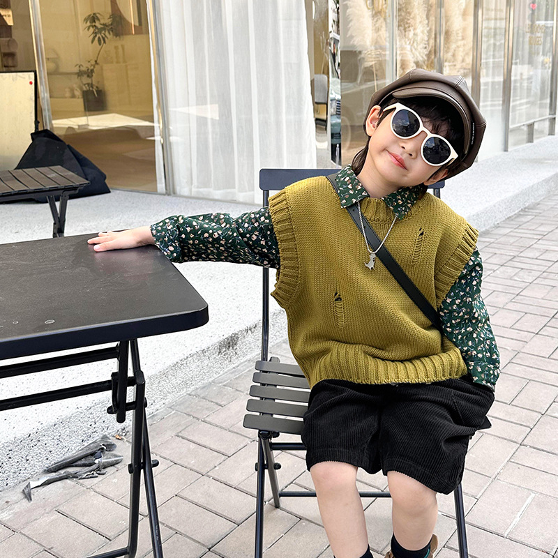 Children’s clothing New 2024 Spring Children’s knitted vest boys’ college style girls’ sweater children’s western style top