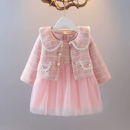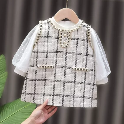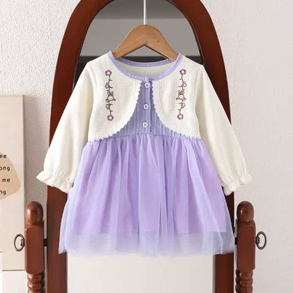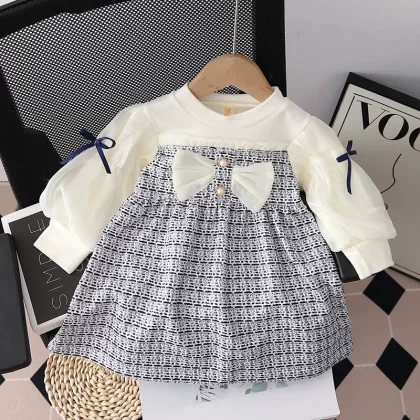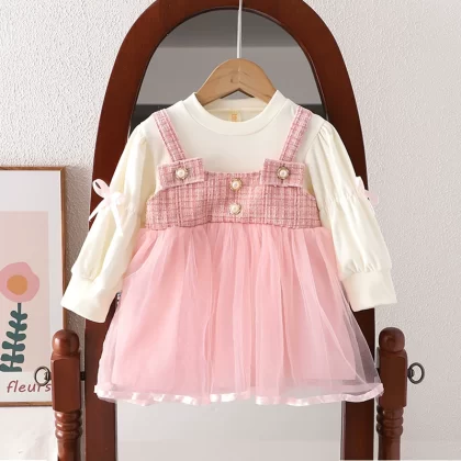 Children’s clothing, small fragrance style spring and autumn style fake two-piece princess skirt