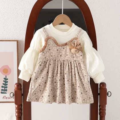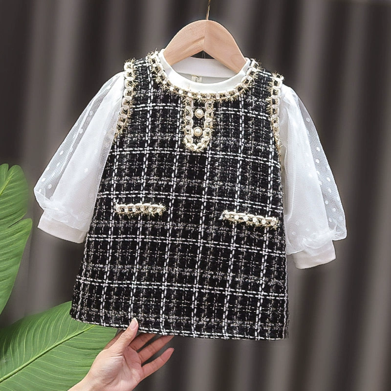 Children's clothing small fragrant spring and autumn fake two-piece princess dress