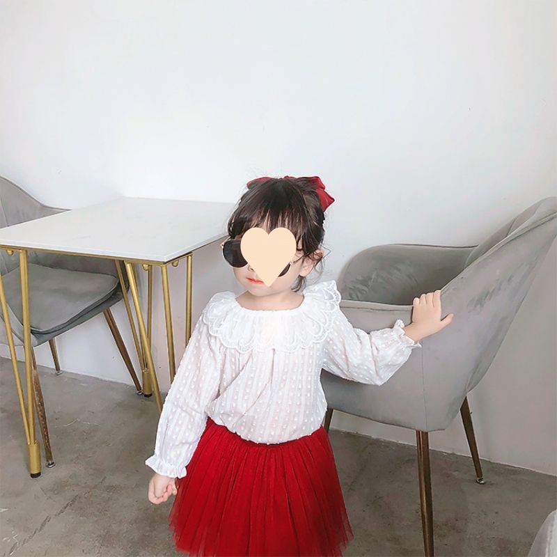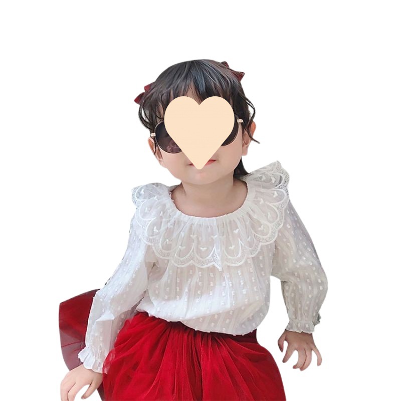 Children’s Clothing Spring and Autumn girls’ bottoming shirt baby white western style lace top Princess lace long sleeve doll collar shirt