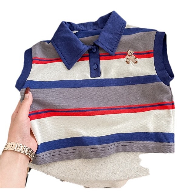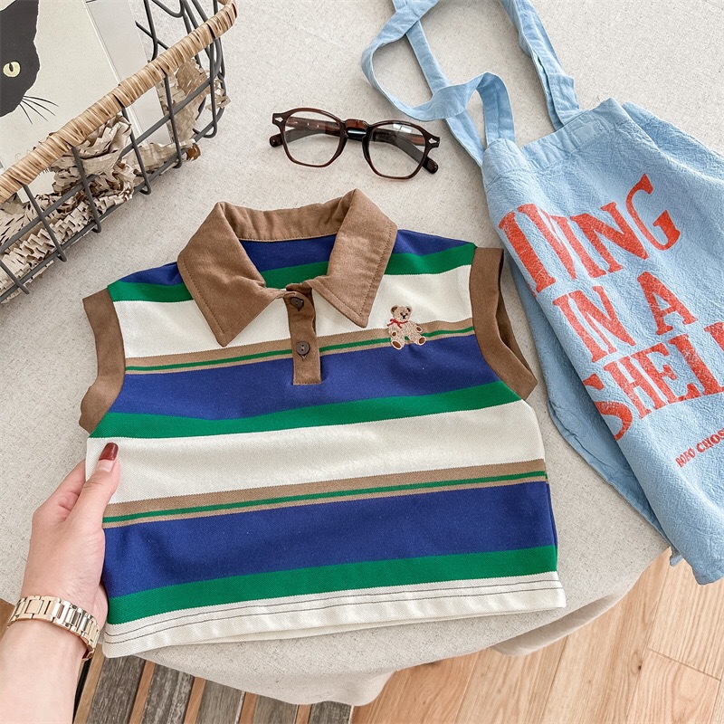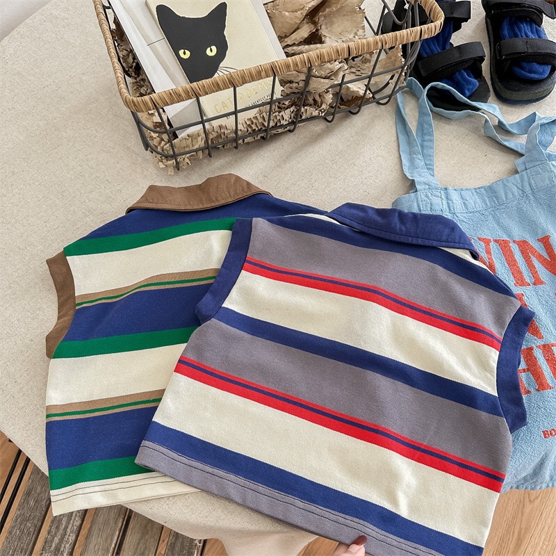 | nameOriginal | Children's clothing striped vest 2024 Summer new Korean style casual loose lapel vest boys and girls iT shirt |