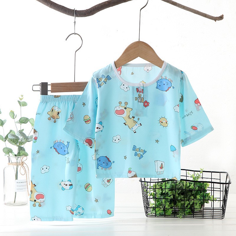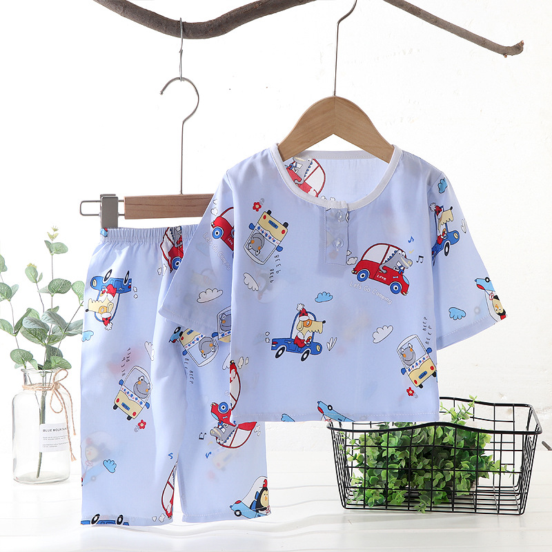 | nameOriginal | Children's clothing summer children's pajamas cotton silk home clothes suit boys and girls baby thin air conditioning clothes baby wholesale |