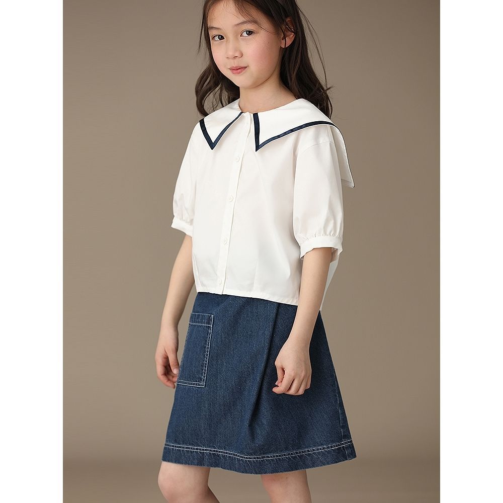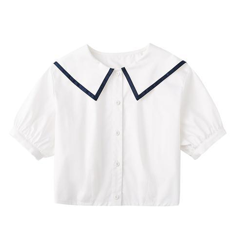 | nameOriginal | Children's clothing summer new girls' navy collar white cotton short sleeve open button shirt college style shirt temperament |