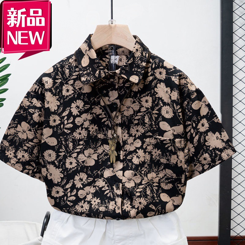 Children's Clothing Summer Short-sleeved 2023 Korean Style Boys and Girls Baby Summer Cool Chiffon Shirt Children's Pattern Half-sleeve Trendy