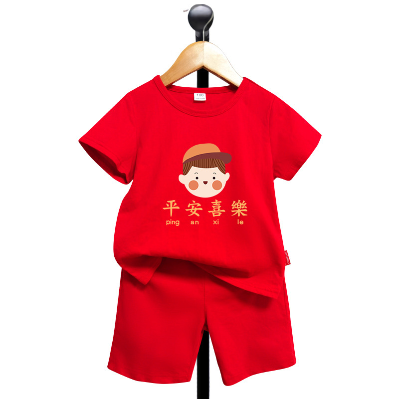 | nameOriginal | Children's clothing wholesale girls boys red short sleeve suit summer brother and sister sister New Year clothes Baby New Year clothes |