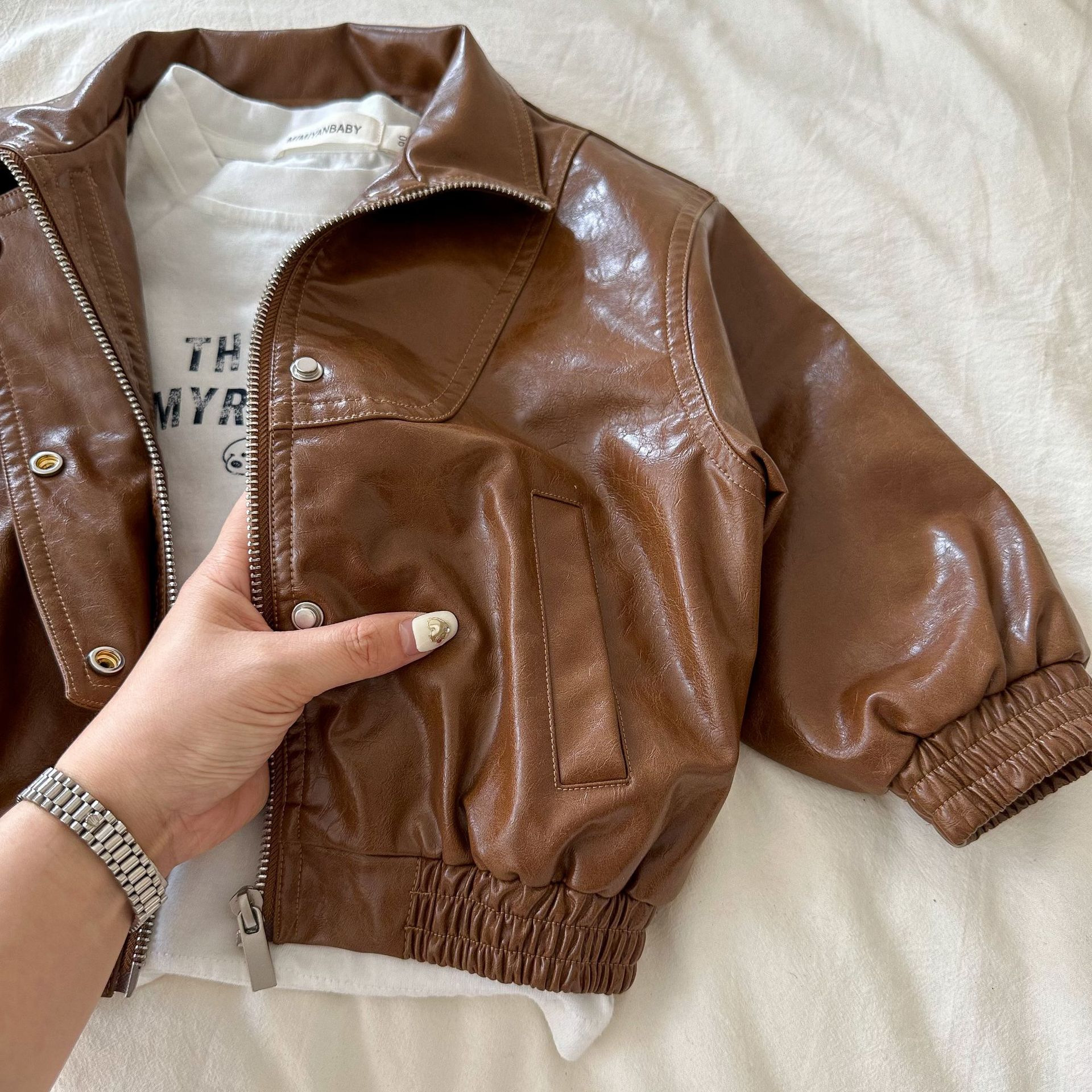 | nameOriginal | Children's coat 2024 squinting spring new boys and girls retro zipper leather coat baby Korean style leather jacket fashion |