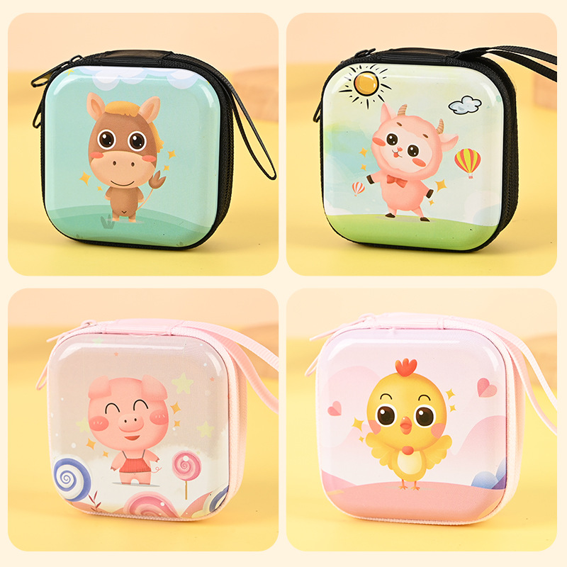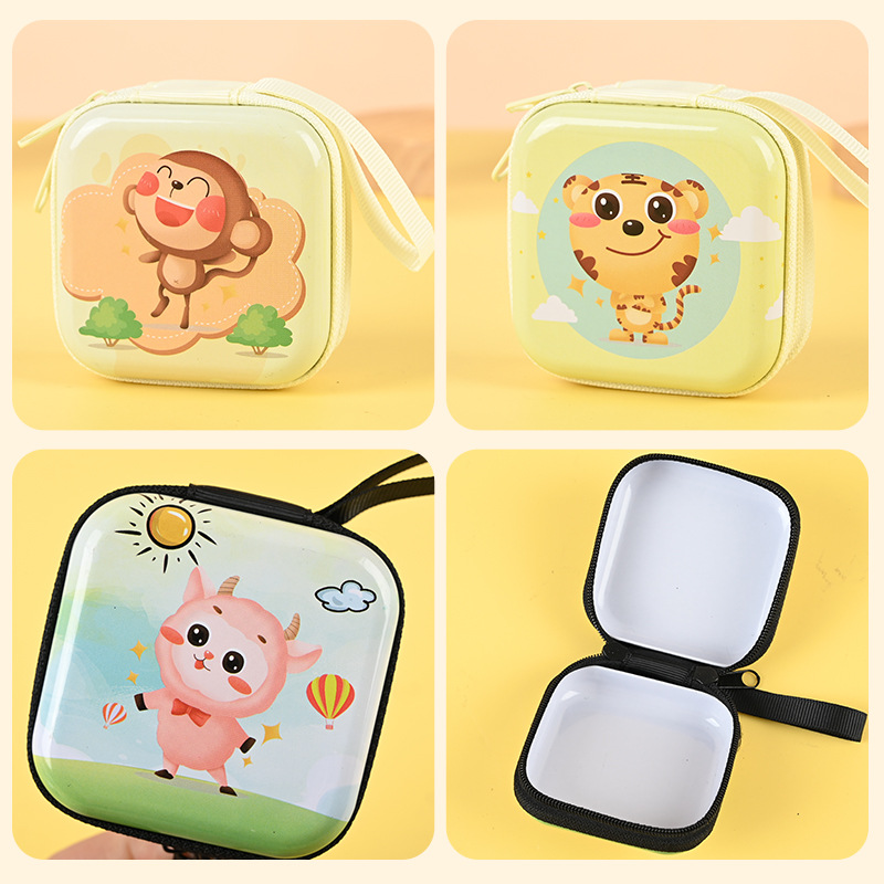 Children’s coin purse square mini tinplate zipper bag student portable headset key portable storage bag in stock