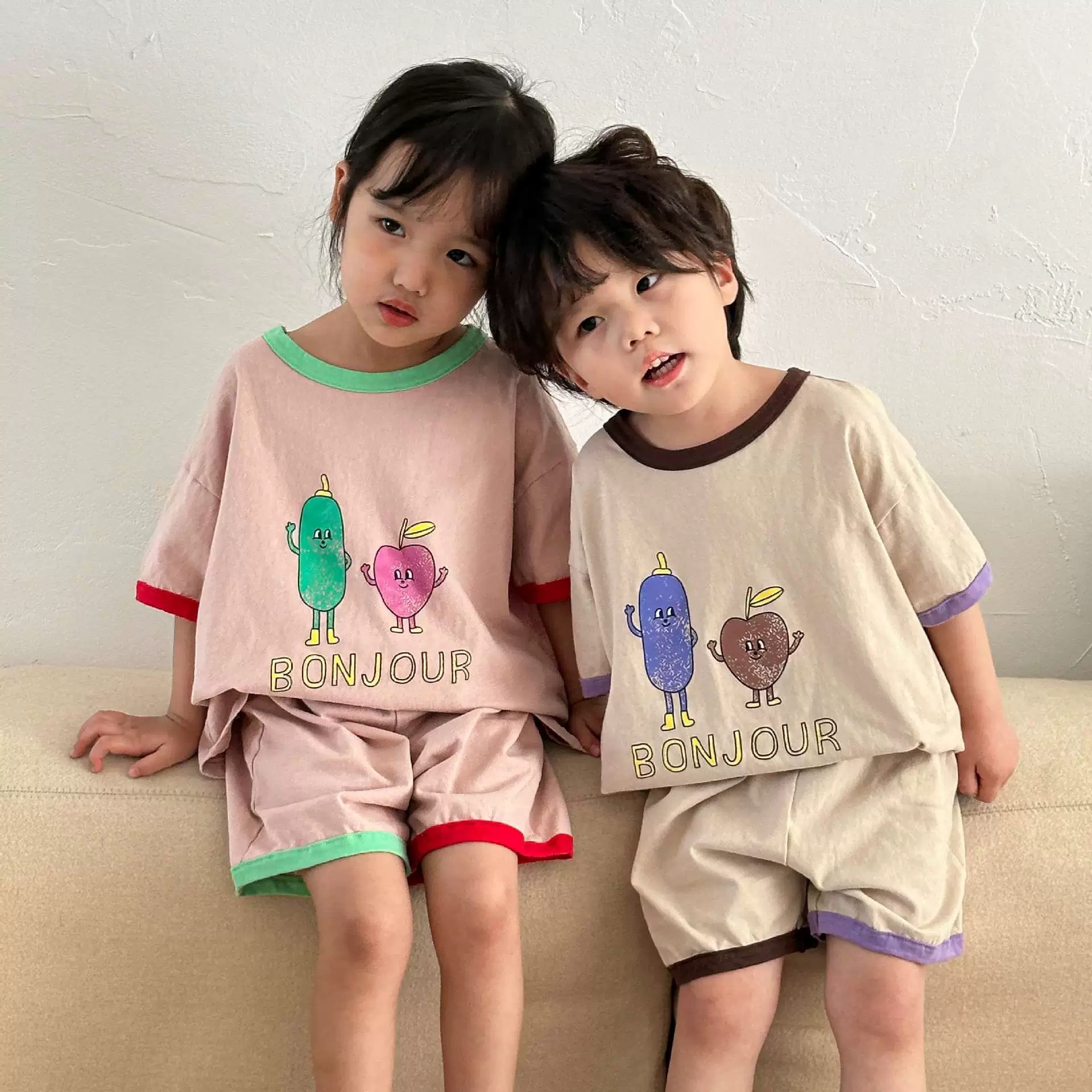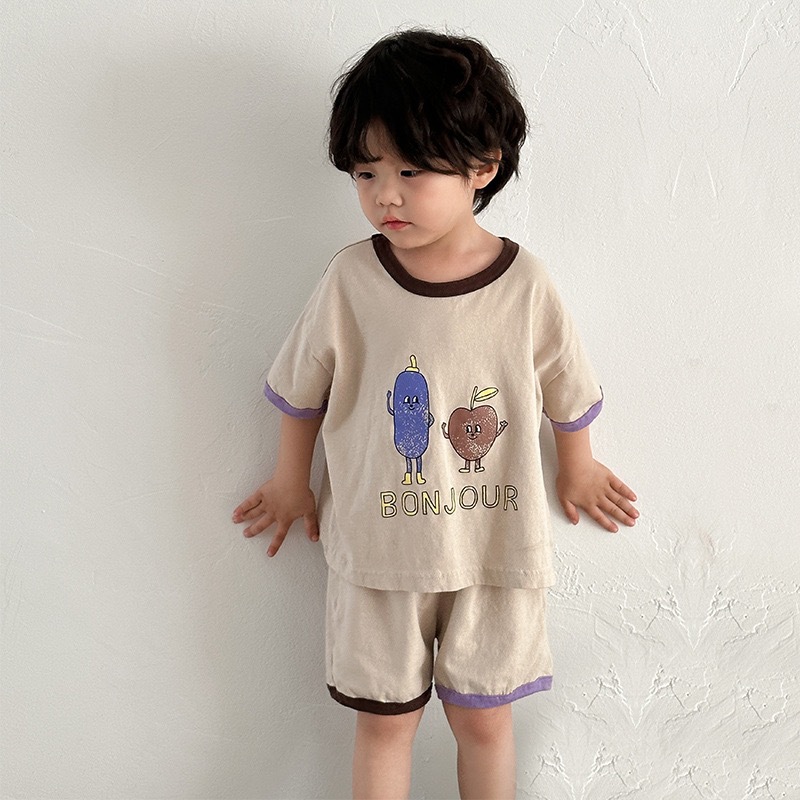 | nameOriginal | Children's Color-contrast Fruit suit Summer Western Style Thin Two-piece Set for Boys and Girls Casual Short-sleeved Shorts |