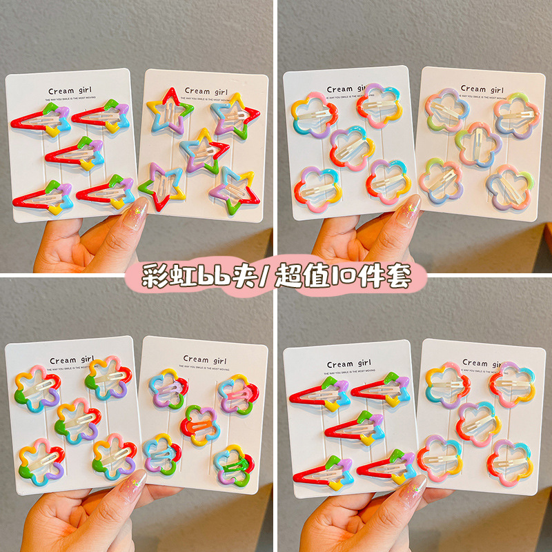 Children's colorful flower cute broken hair BB clip headdress girls' rainbow side bangs hairpin girls' hairpin hair accessories
