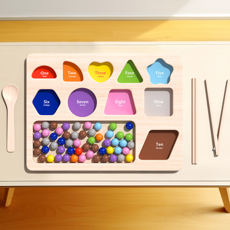 Children’s concentration training parent-child interactive educational toys early education logical thinking clip bead shape color classification