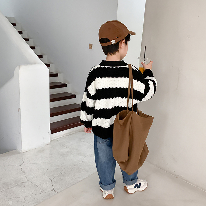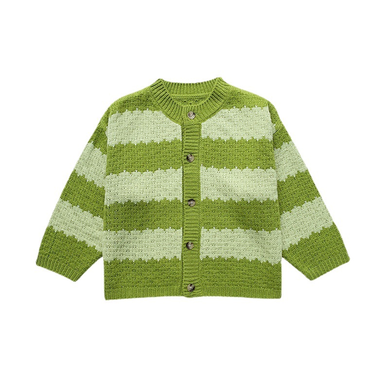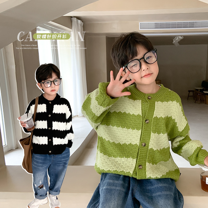 | nameOriginal | Children's contrast color striped sweater 2024 autumn and winter knitwear baby cardigan coat trendy live broadcast one-piece delivery foreign trade |