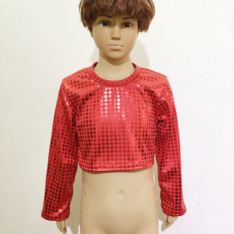 | nameOriginal | Children's Costume Kindergarten Adult University Stage Clothes Dot Sequins Long Sleeve Dancing Navel T-shirt |