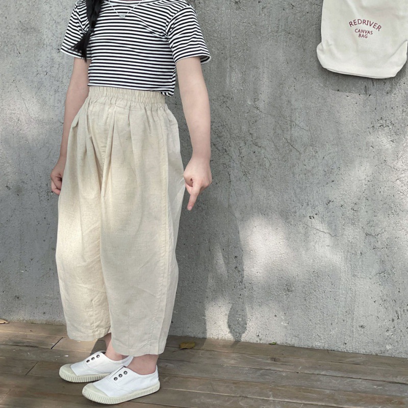 Children’s Cotton and Linen Pants Summer 2024 New Boys and Girls Loose Carrot Pants Thin Ankle-length Pants Summer Casual Pants