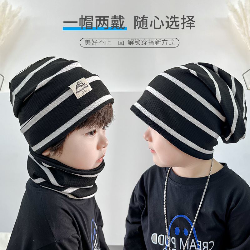 | nameOriginal | Children's cotton autumn and winter knitted hat scarf suit striped ear protection hat baby pullover hat scarf 2 pieces |