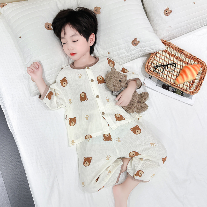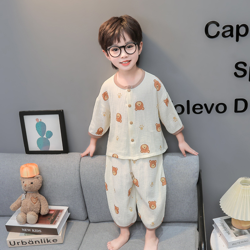 | nameOriginal | Children's Cotton Gauze Home Clothes suit 2024 New Spring and Summer Pajamas for Boys and Girls Thin Summer Home Clothes |