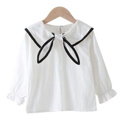 Children's Cotton Linen Base Shirt Girls' Doll Shirt New Shirt Spring and Autumn Long Sleeve Shirt Girls' Short Sleeve Shirt Summer