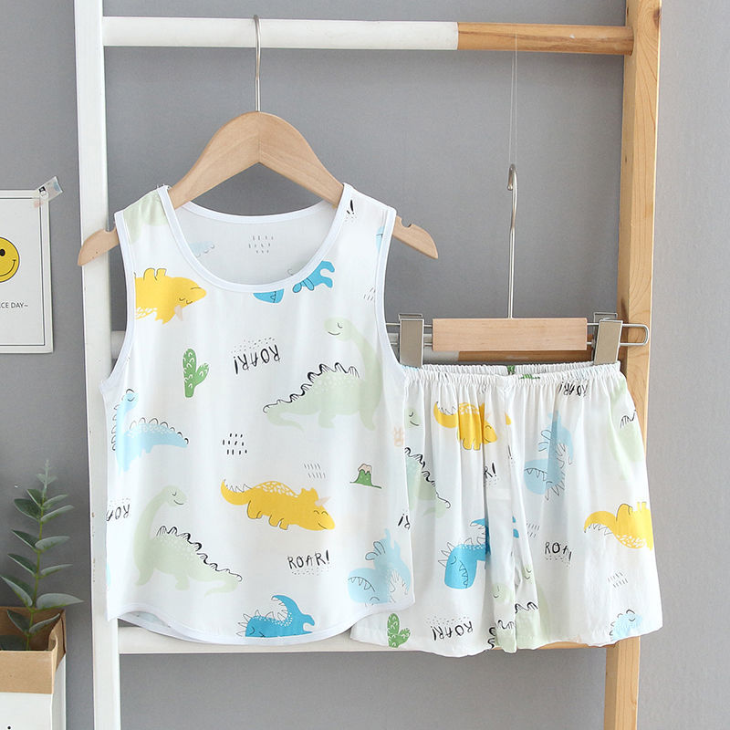 | nameOriginal | Children's cotton pajamas suit homewear boys' and girls' vest children's summer sleeveless suit baby pajamas |