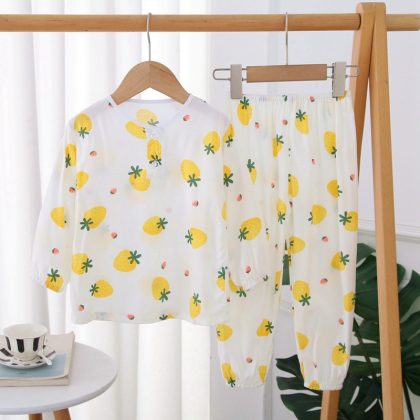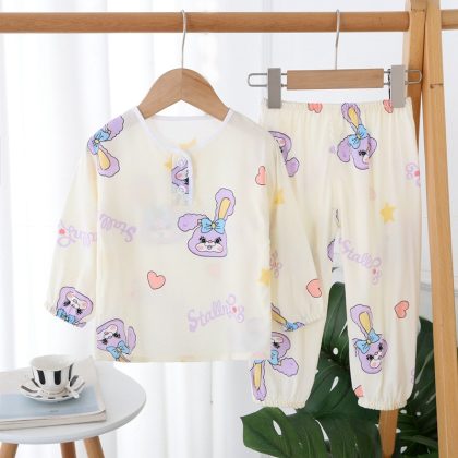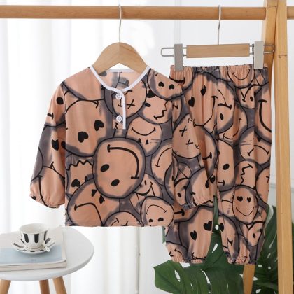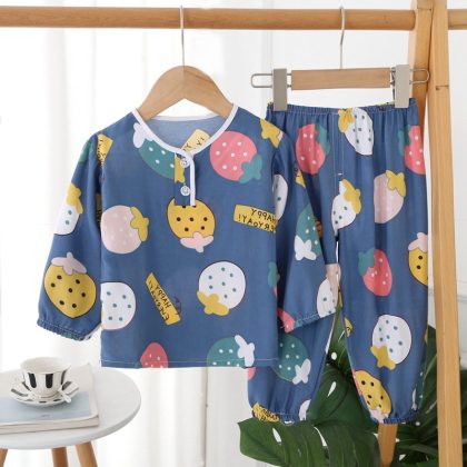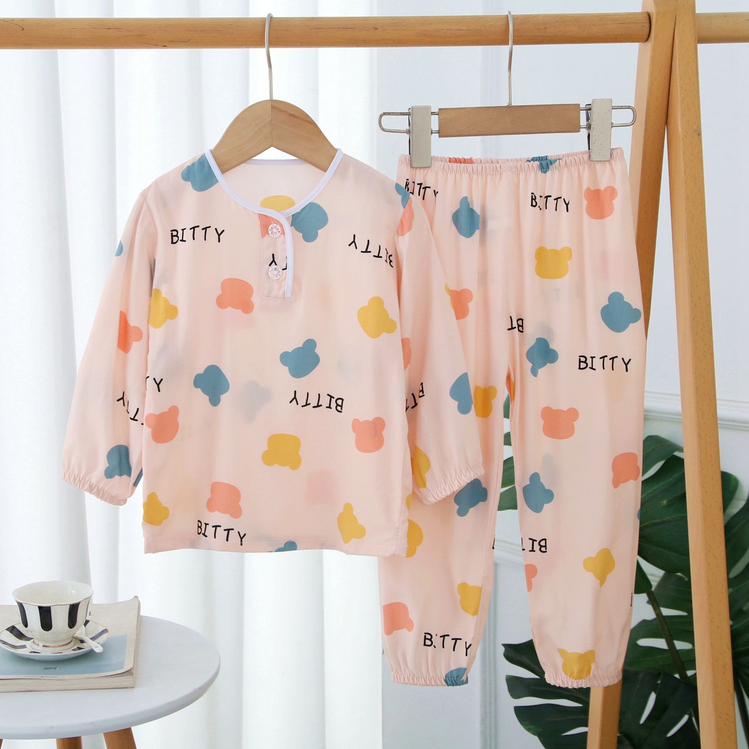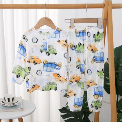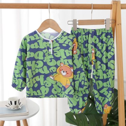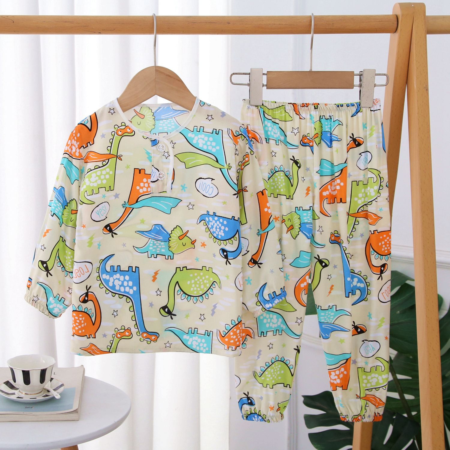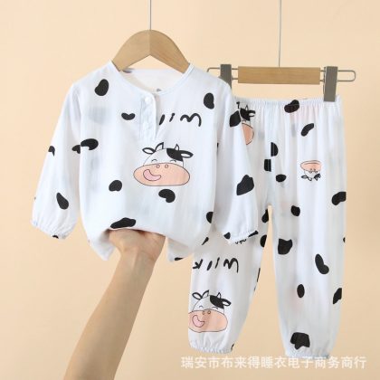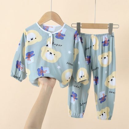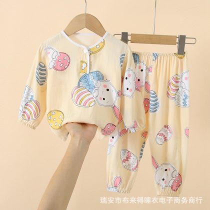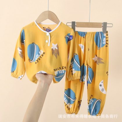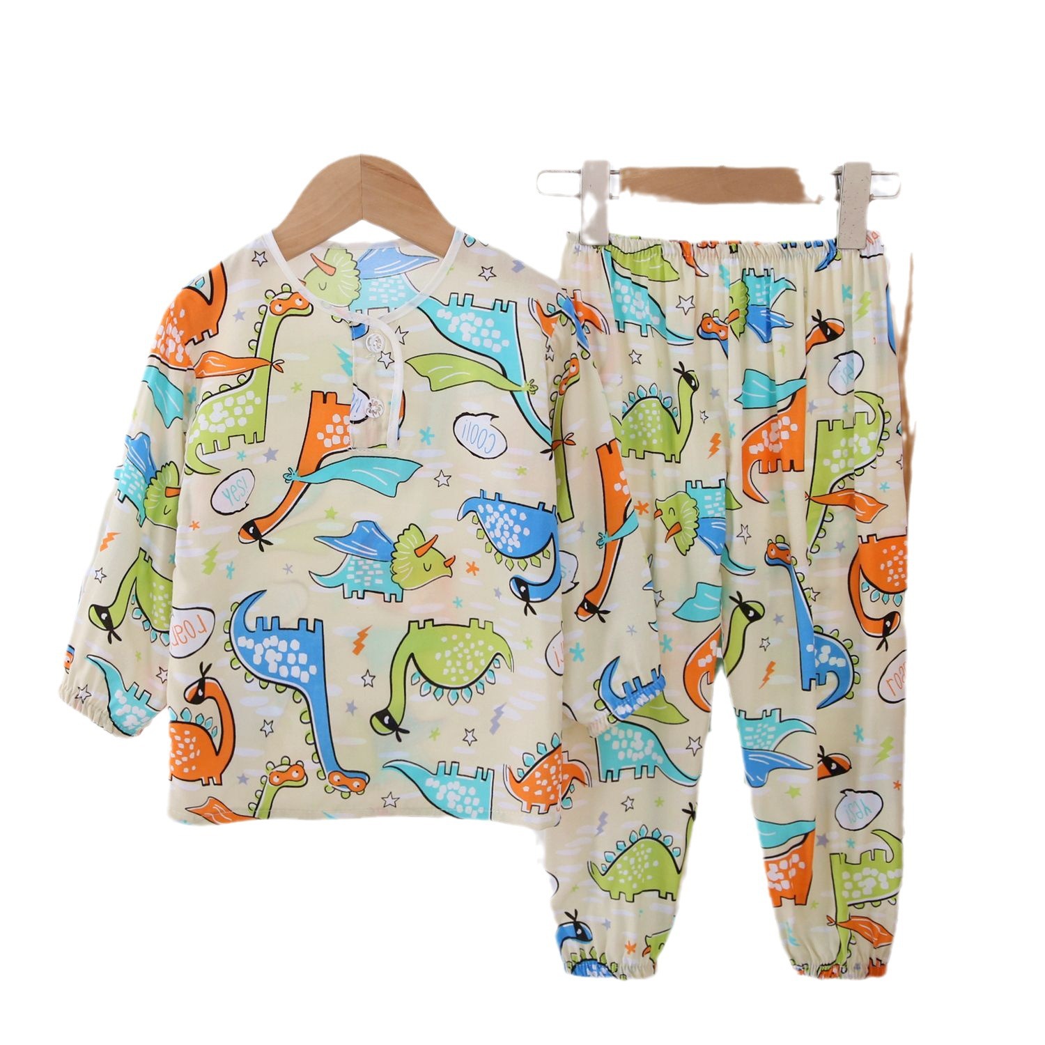 | nameOriginal | Children's cotton pajamas thin long sleeve suit boys and girls baby artificial cotton silk mosquito-proof home wear spring and summer |